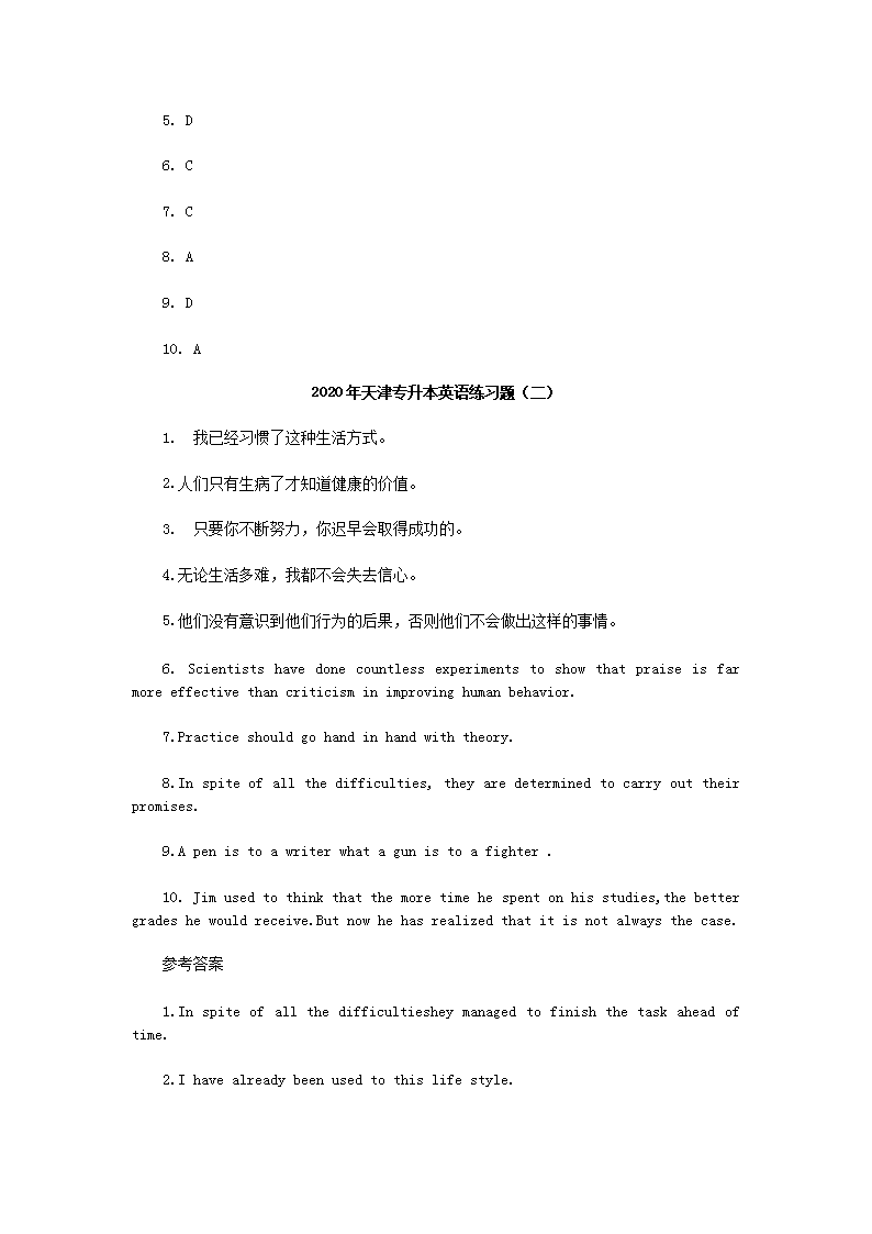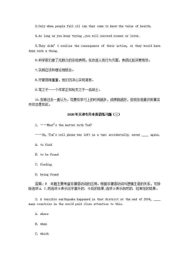 【文档名称】 2020年天津专升本英语练习题三套(Word版).doc