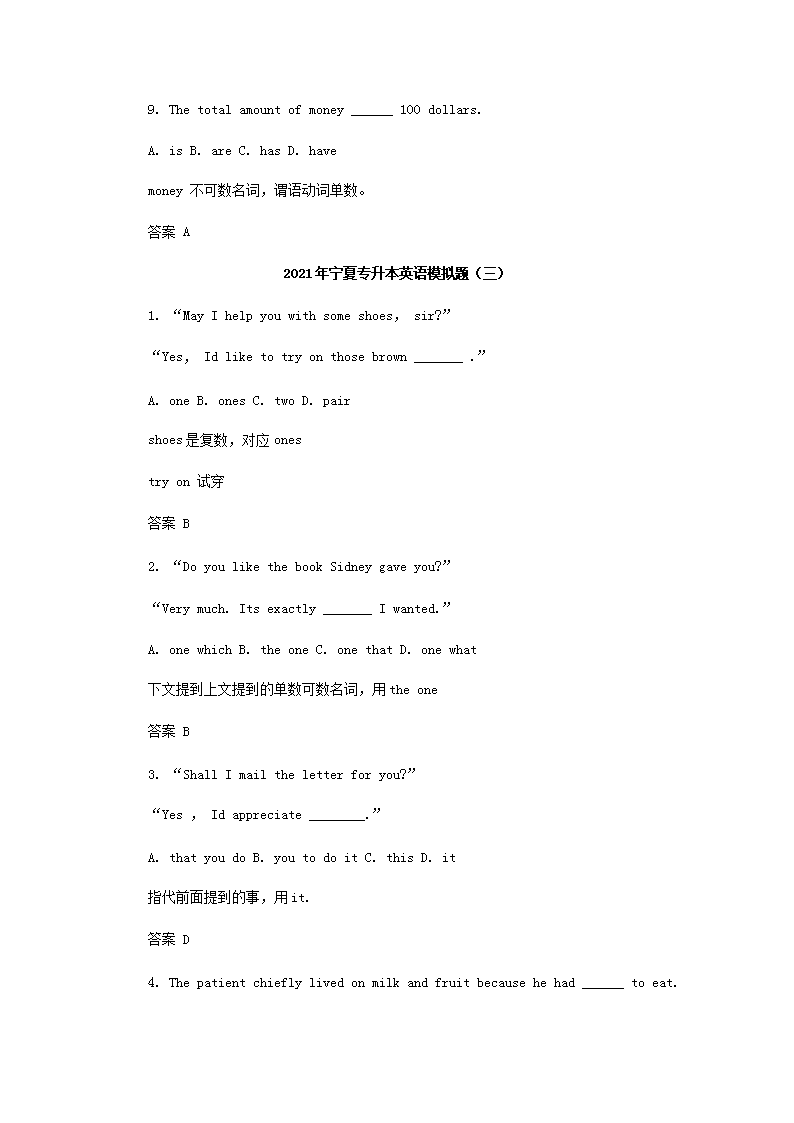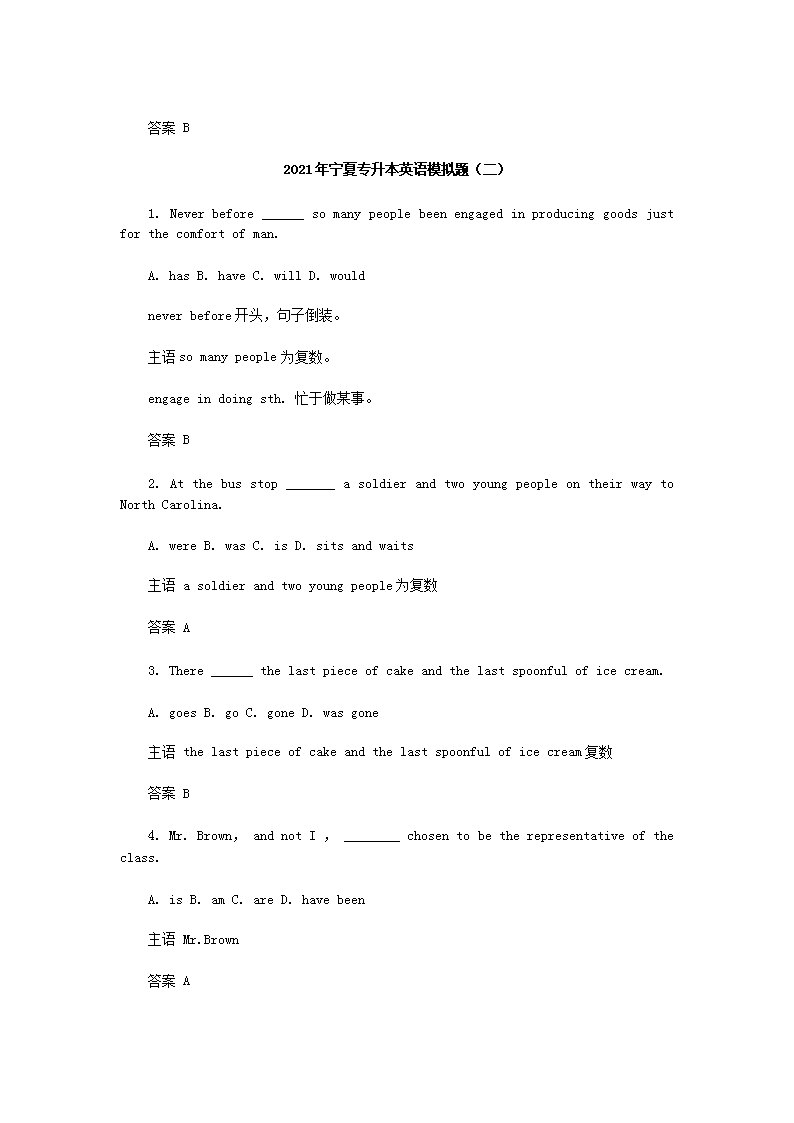【文档预览】 无忧考网整理发布2021年宁夏专升本英语模拟题三套(Word版),前五页预览如下:
