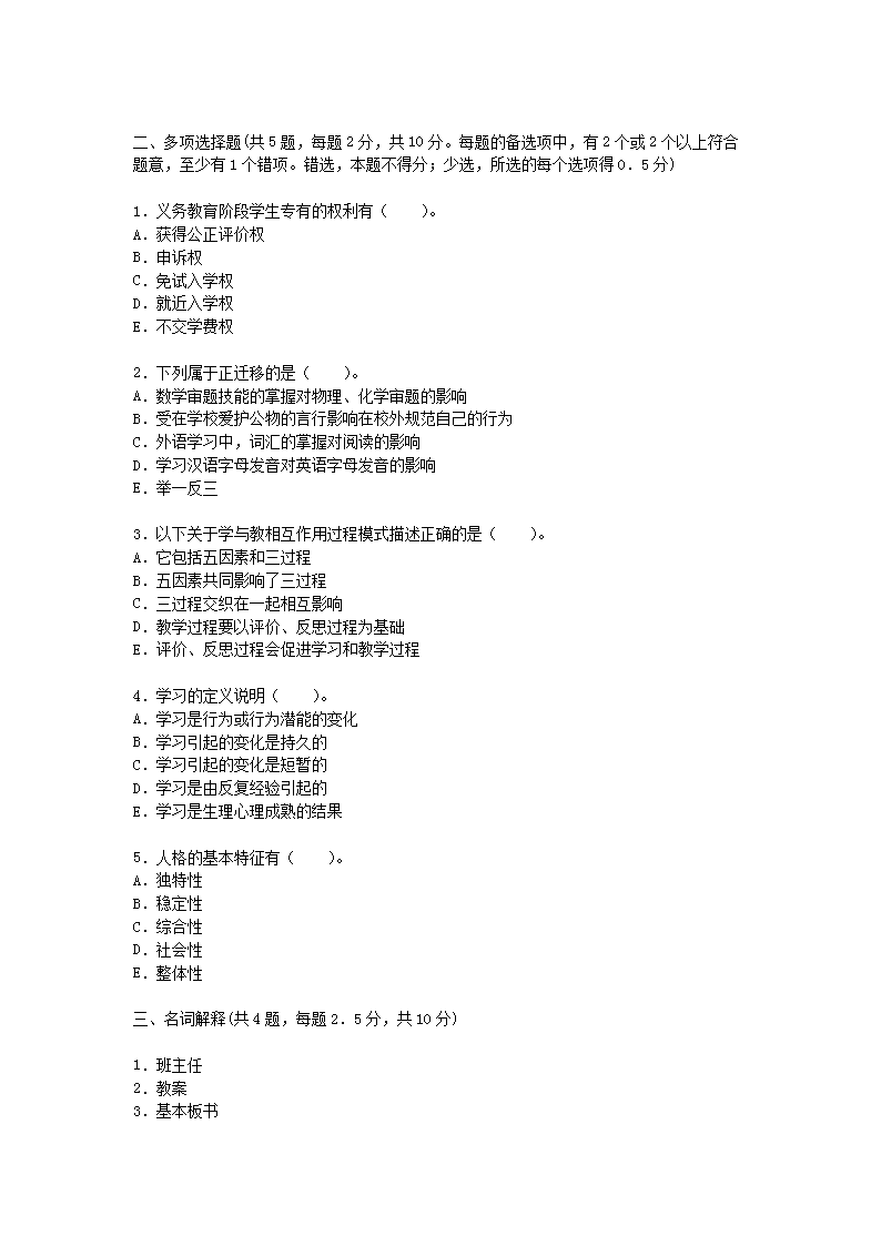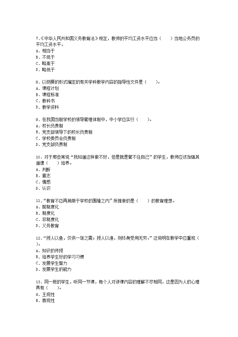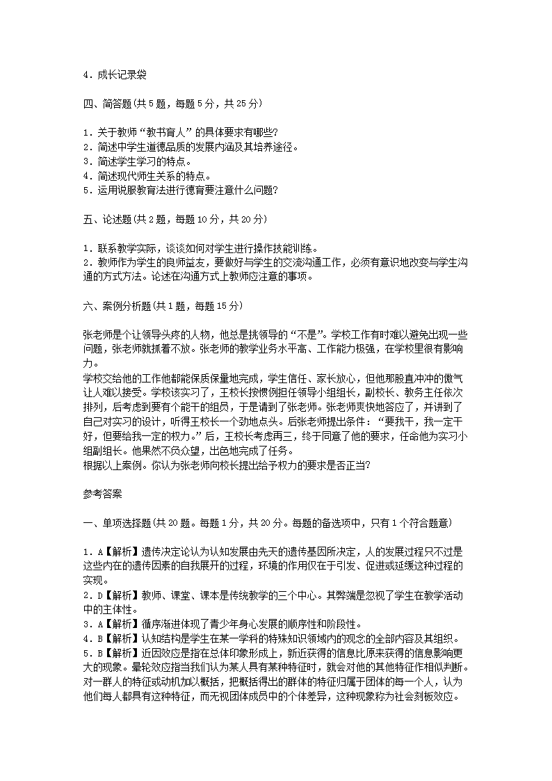 【文档名称】 2021湖北特岗教师招聘考试模拟试题及答案三套(Word版).doc