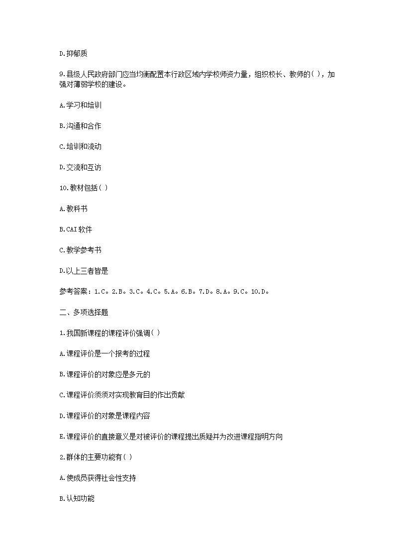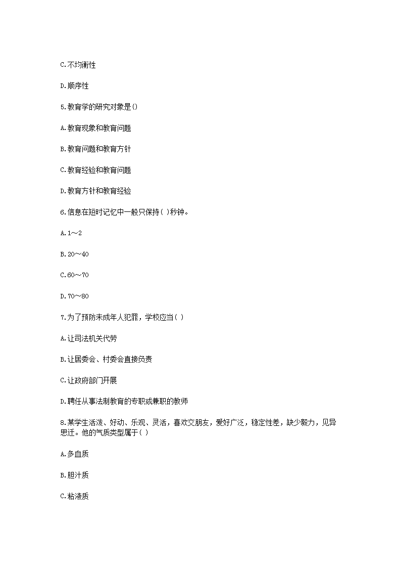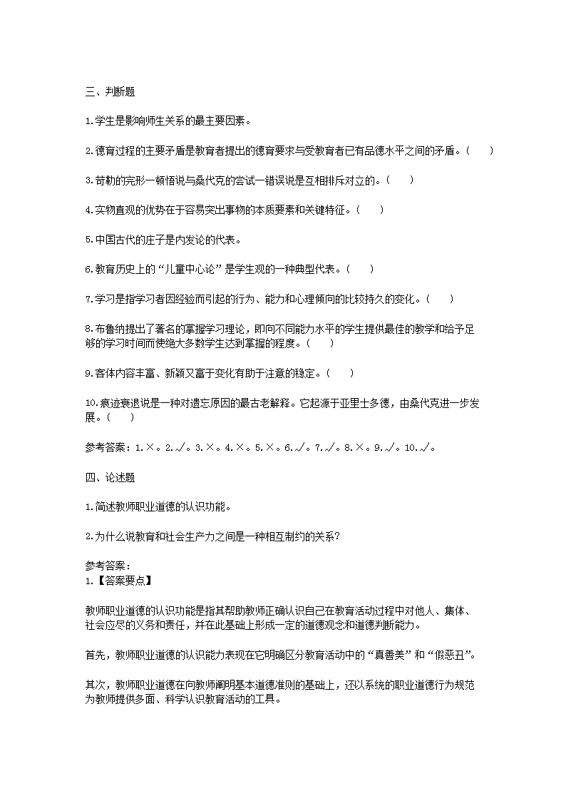 【文档名称】 2021重庆特岗教师招聘考试教育综合知识模拟题及答案三套(Word版).doc