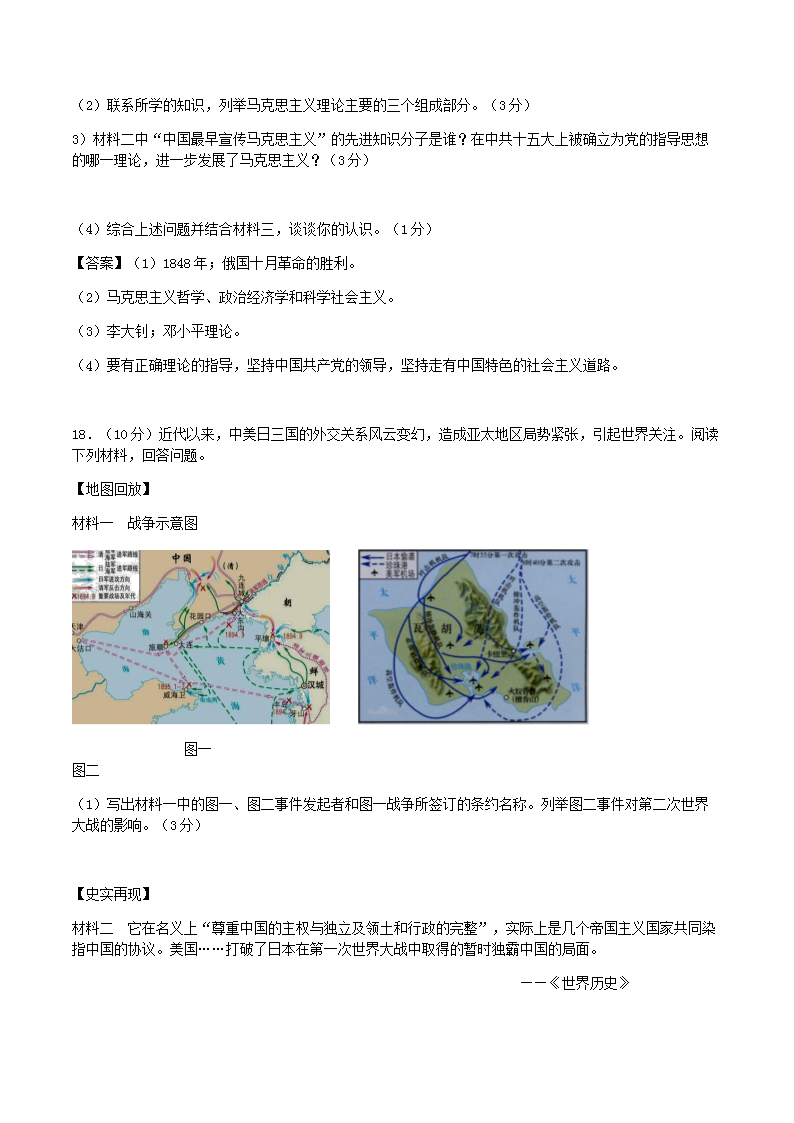 【文档名称】 2018年广西河池市中考历史真题及答案(Word版).doc