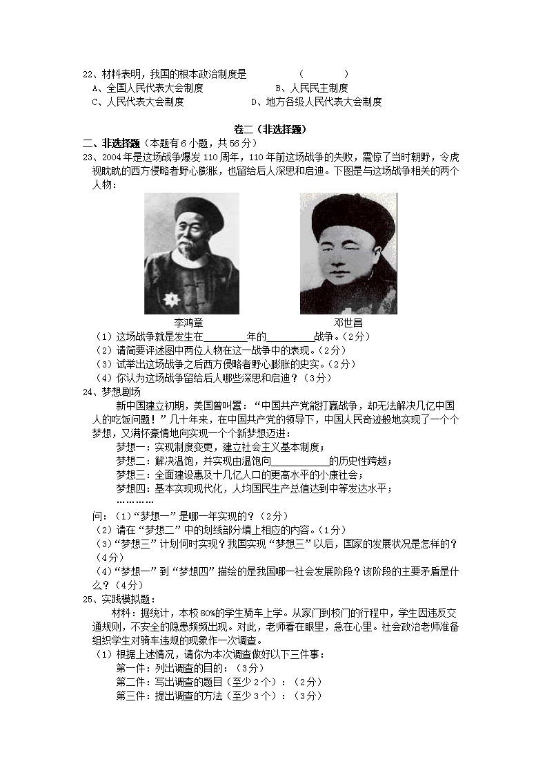 【文档名称】 2012山东省济南市中考历史真题及答案(Word版).doc