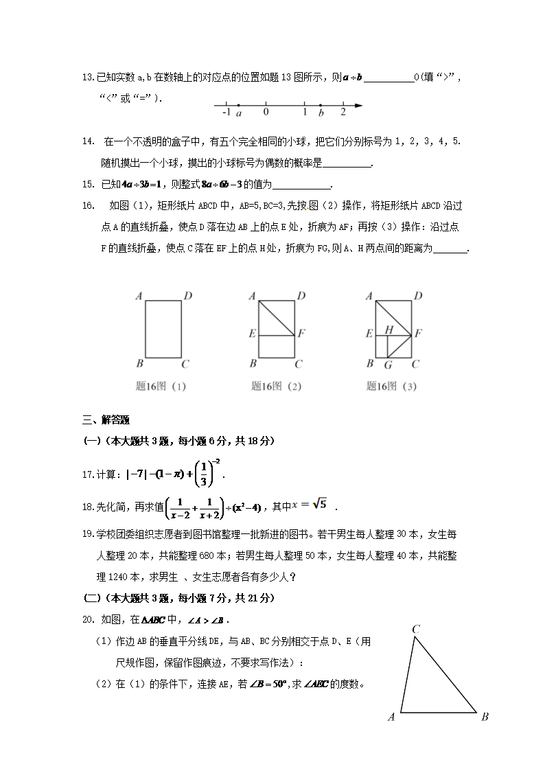 【文档名称】 2017年广东省潮州市中考数学试题及答案(Word版).doc