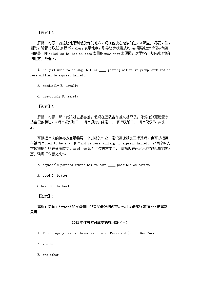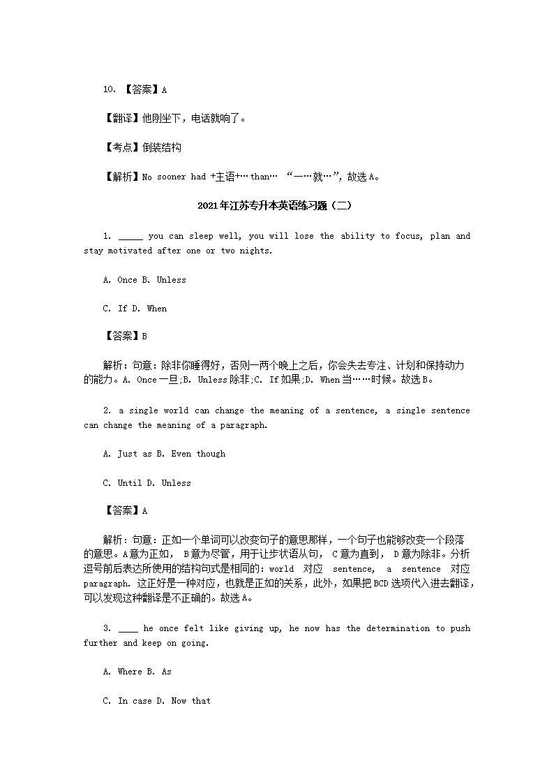 【文档名称】 2021年江苏专升本英语练习题三套(Word版).doc