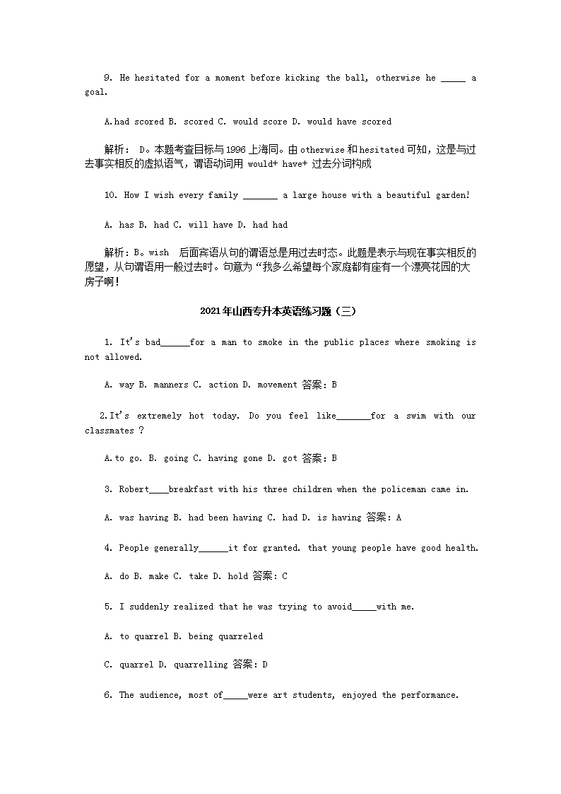 【文档预览】 无忧考网整理发布2021年山西专升本英语练习题三套(Word版),前五页预览如下: