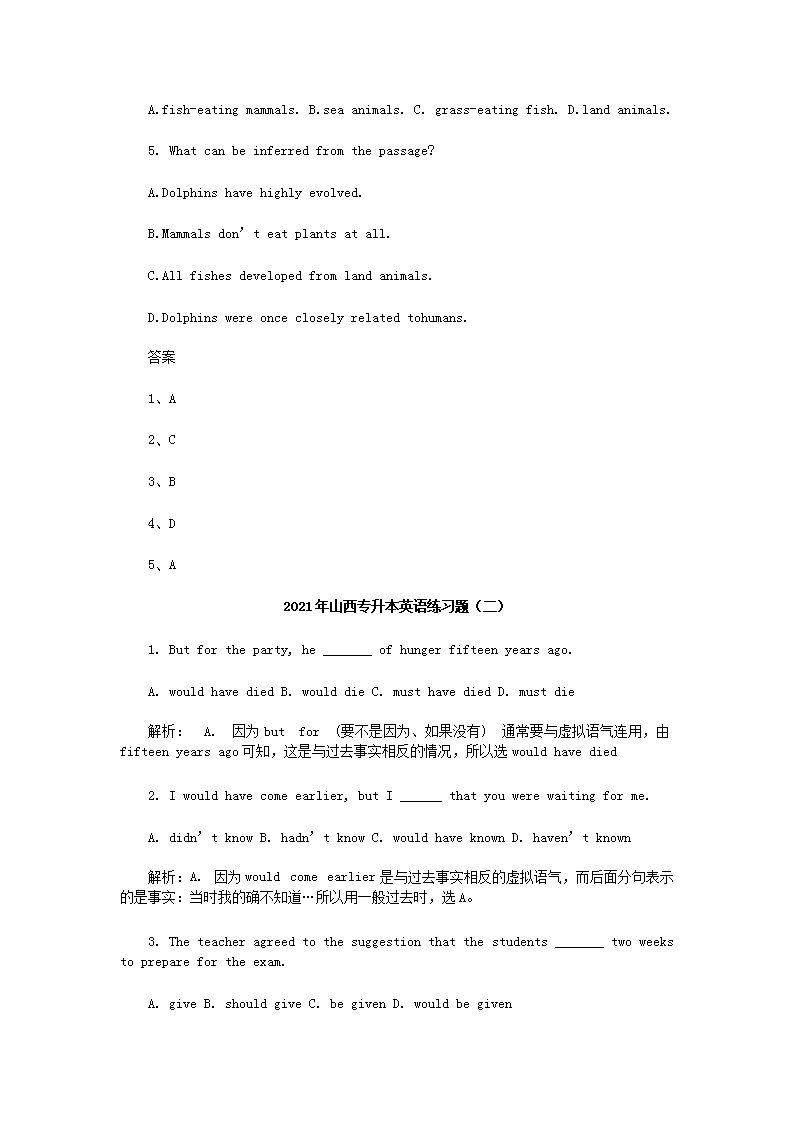 【文档名称】 2021年山西专升本英语练习题三套(Word版).doc
