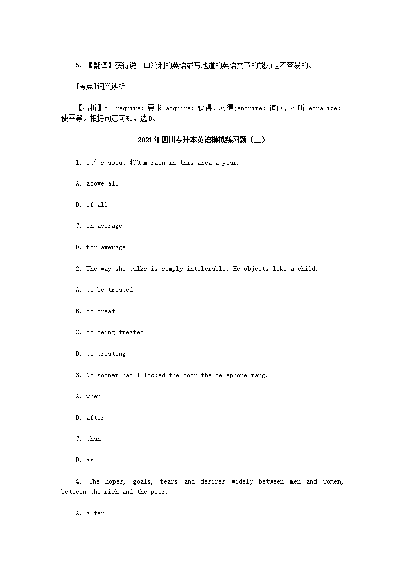 【文档名称】 2021年四川专升本英语模拟练习题三套(Word版).doc