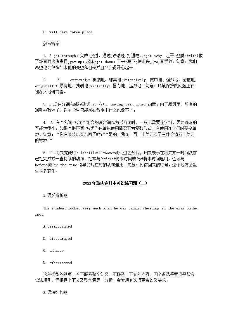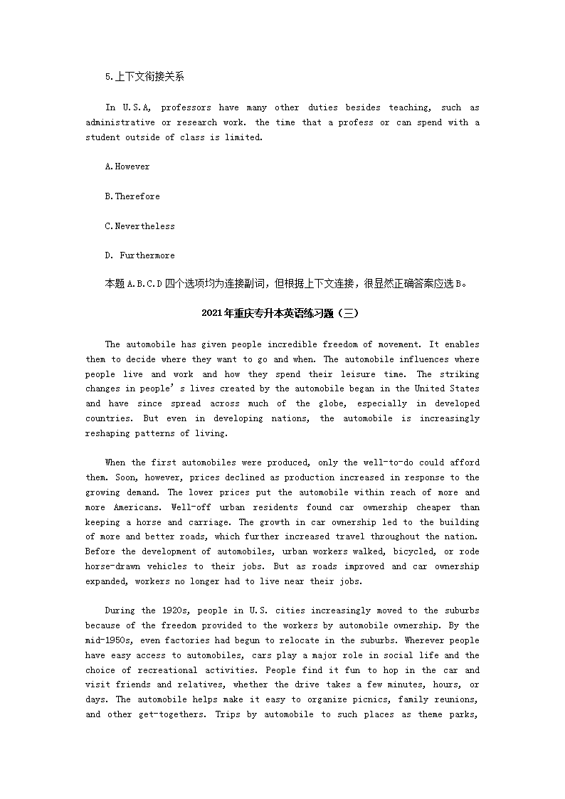 【文档名称】 2021年重庆专升本英语练习题三套(Word版).doc