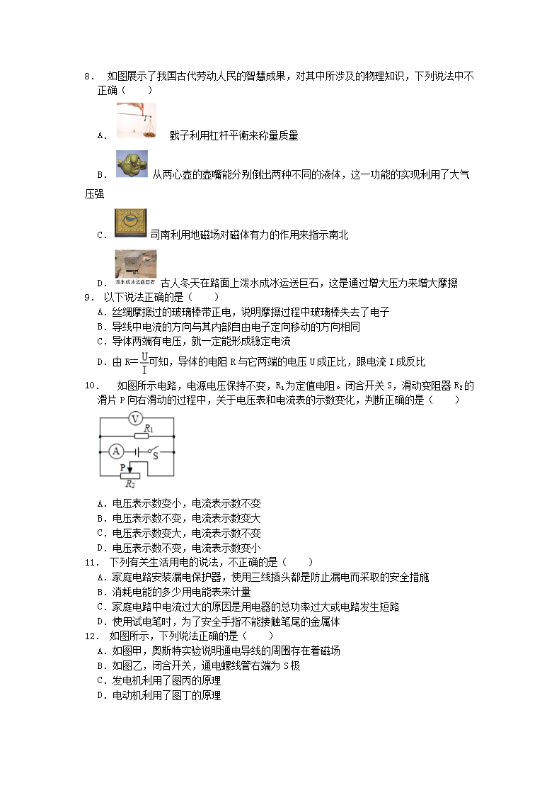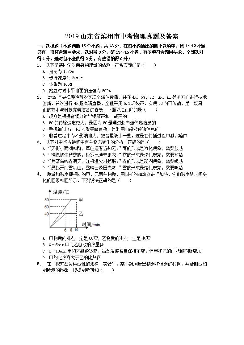 【文档名称】 2019山东省滨州市中考物理真题及答案(Word版).doc