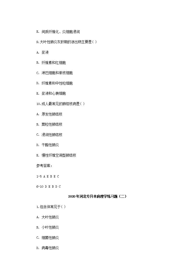 【文档名称】 2020年河北专升本病理学练习题三套(Word版).doc