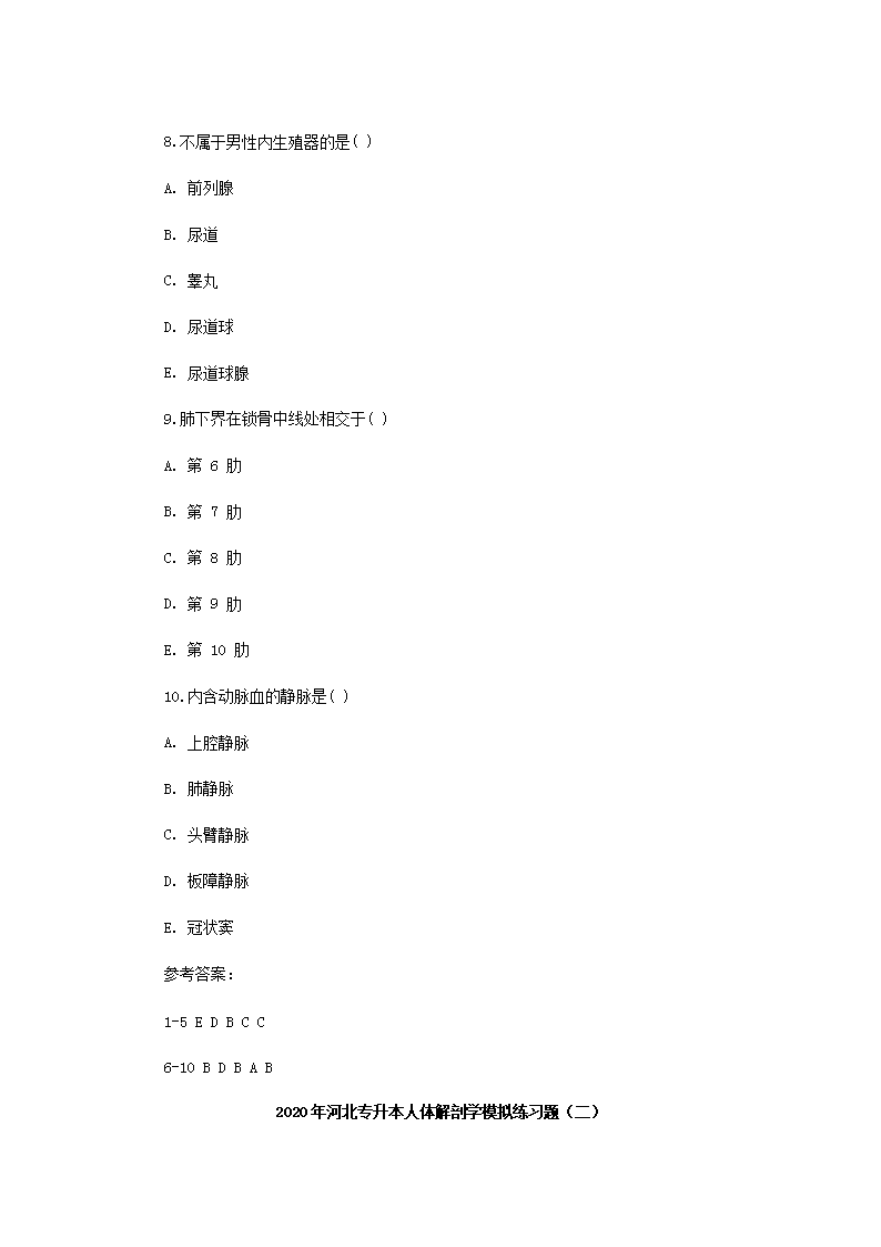 【文档名称】 2020年河北专升本人体解剖学模拟练习题三套(Word版).doc