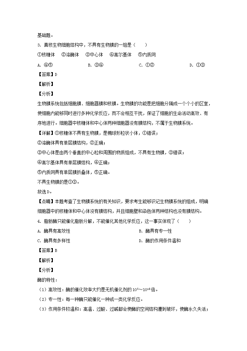 【文档名称】 2020年青海普通高中会考生物真题及答案(Word版).doc