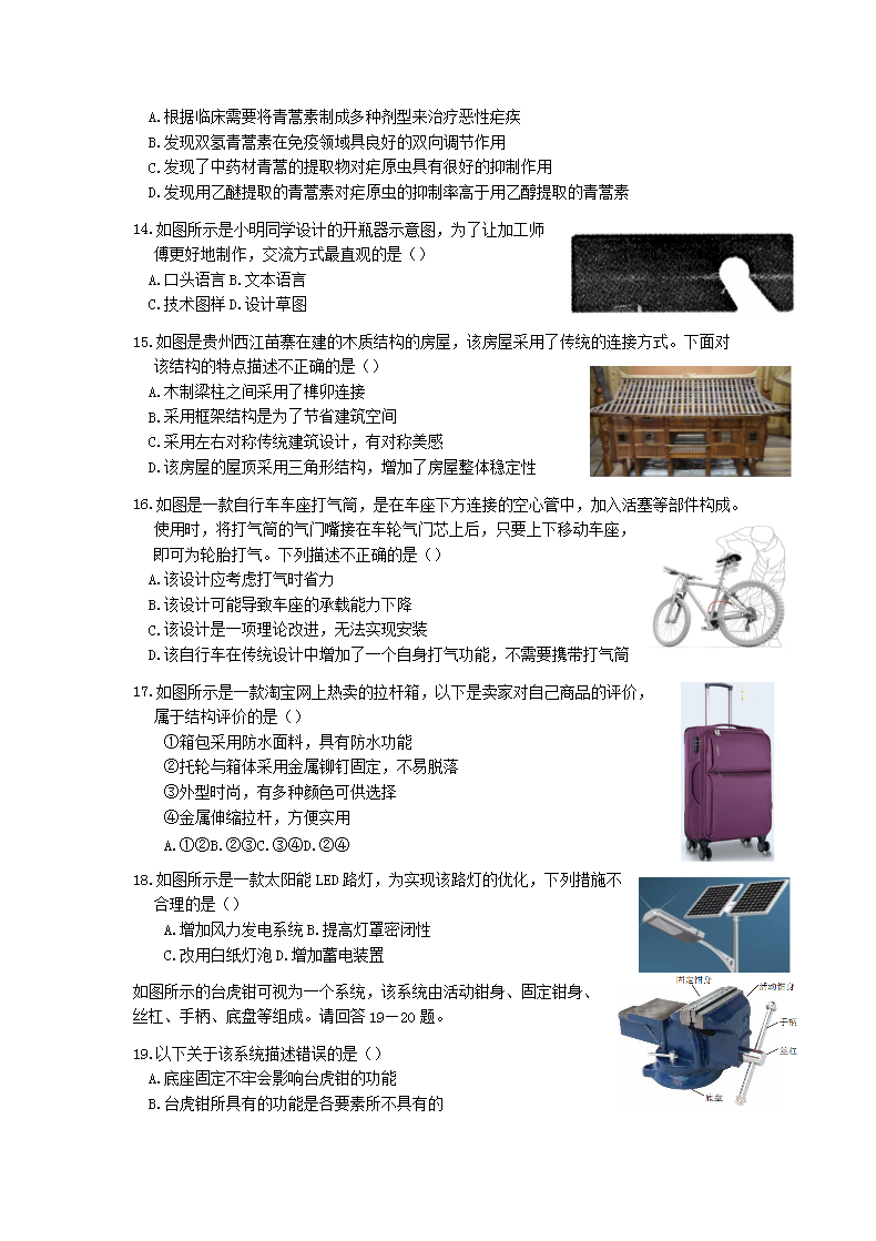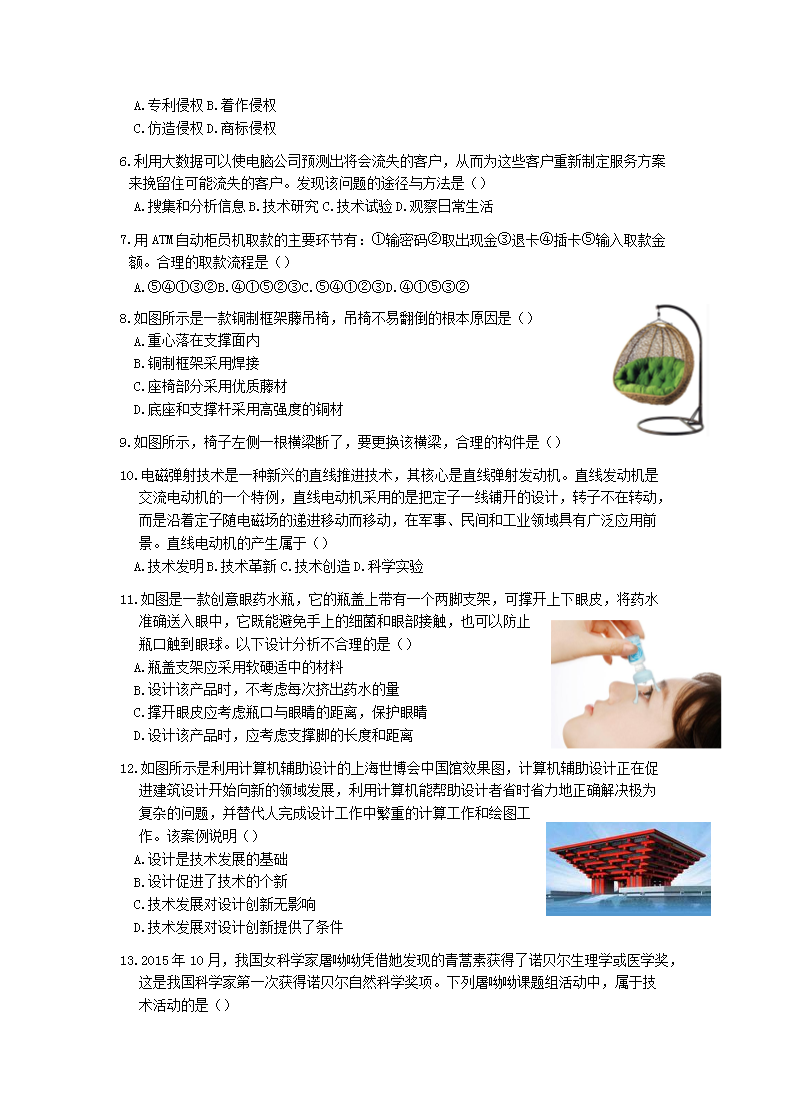 【文档名称】 2016年贵州普通高中会考通用技术真题及答案(Word版).doc