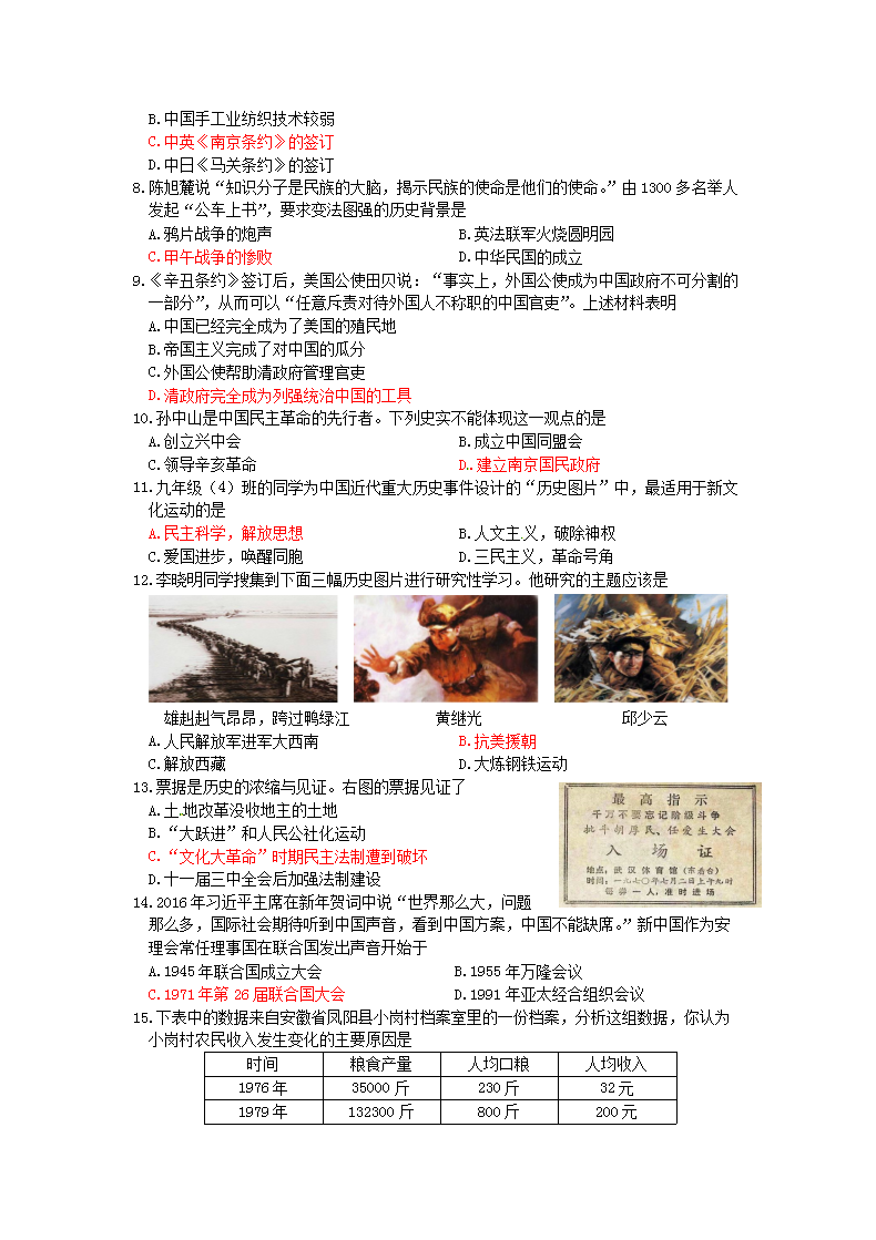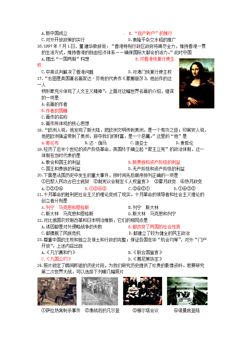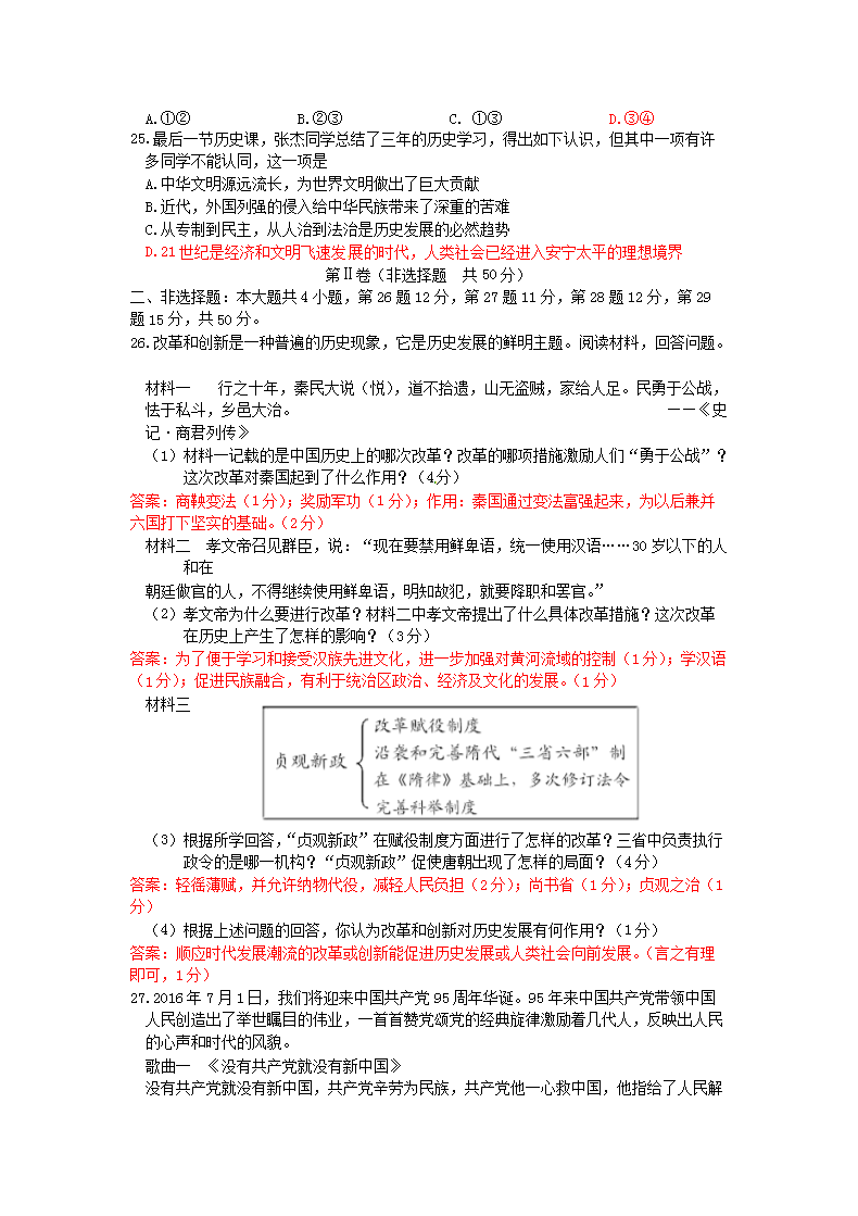 【文档名称】 2016山东省滨州市中考历史真题及答案(Word版).doc