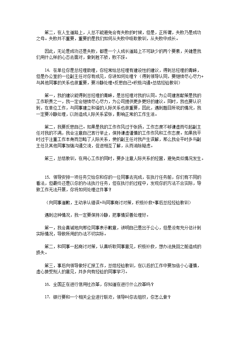 【文档预览】 无忧考网整理发布各大商业银行面试真题及答题范例(Word版),前五页预览如下: