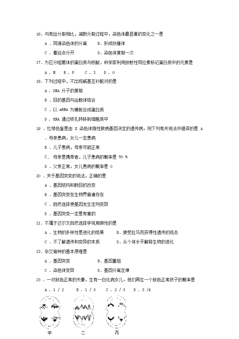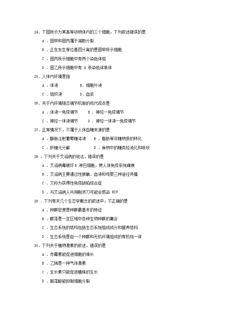 【文档名称】 2012年新疆普通高中会考生物真题及答案(Word版).doc