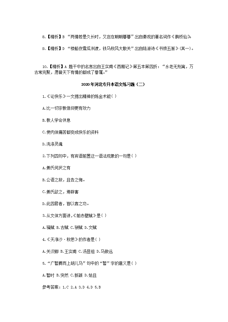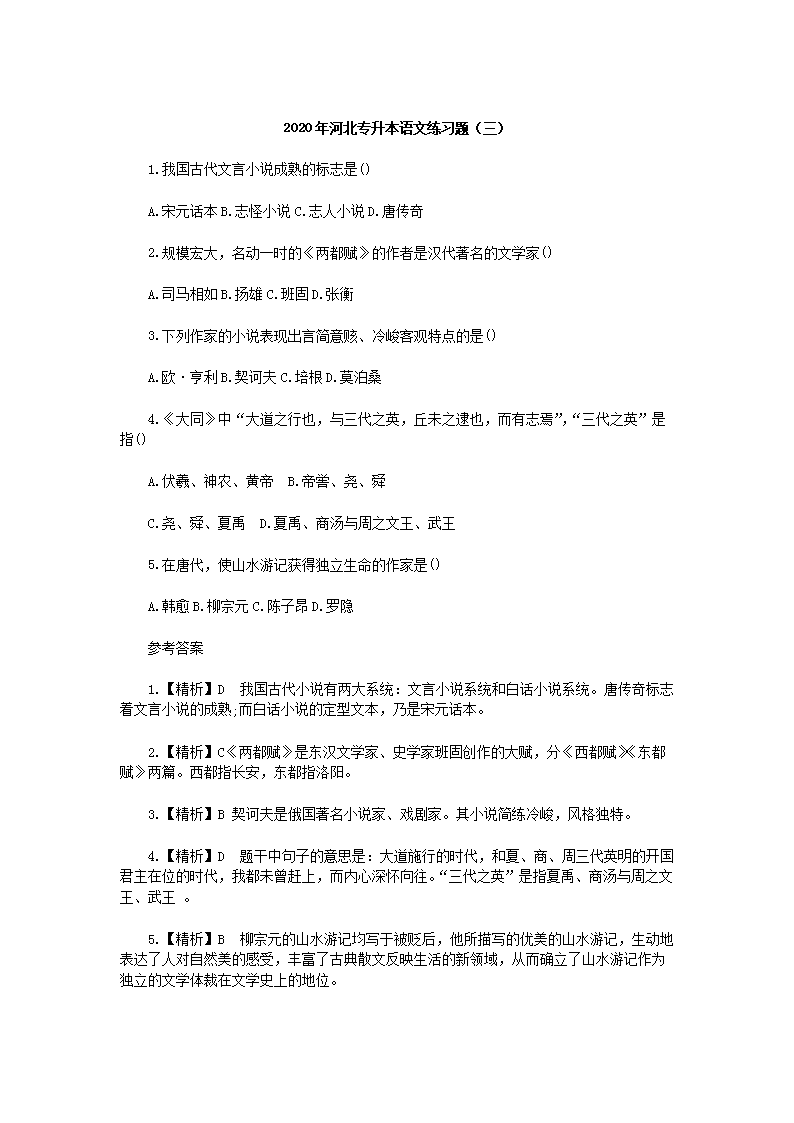 【文档名称】 2020年河北专升本语文练习题三套(Word版).doc