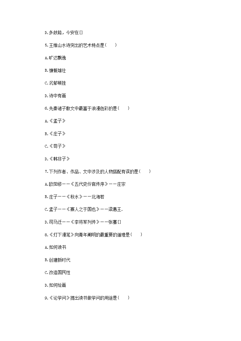 【文档名称】 2020年河北专升本语文模拟练习题三套(Word版).doc