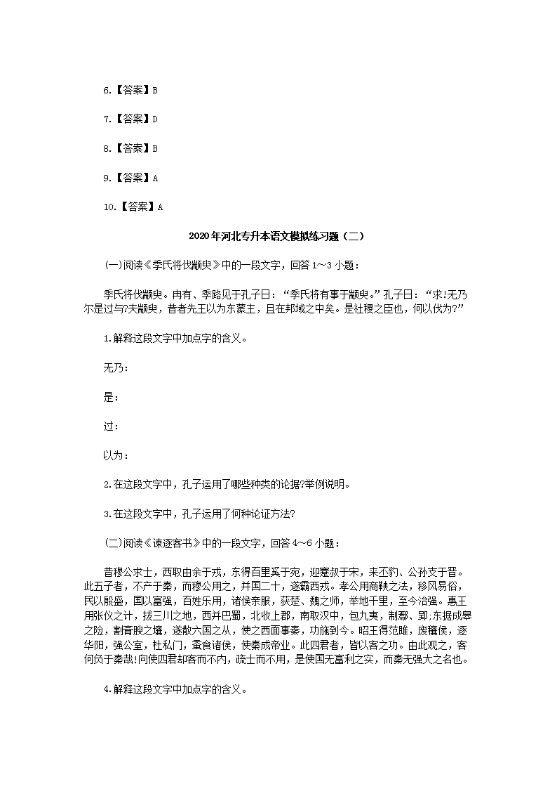 【文档预览】 无忧考网整理发布2020年河北专升本语文模拟练习题三套(Word版),前五页预览如下: