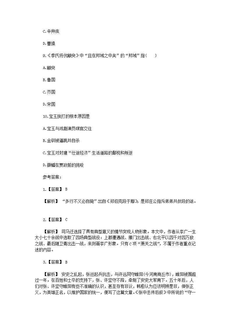 【文档预览】 无忧考网整理发布2020年河北专升本语文模拟题三套(Word版),前五页预览如下: