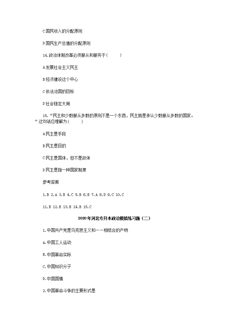 【文档预览】 无忧考网整理发布2020年河北专升本政治模拟练习题三套(Word版),前五页预览如下:
