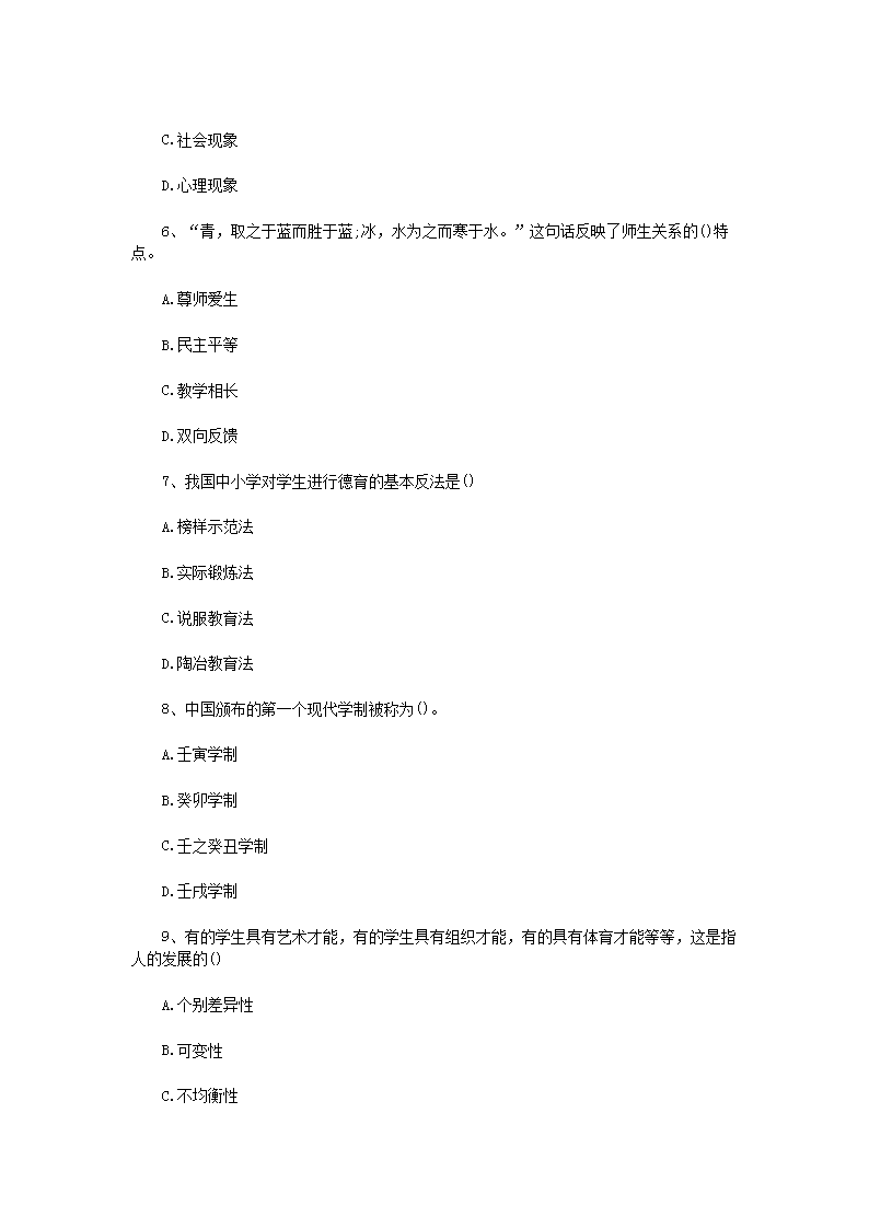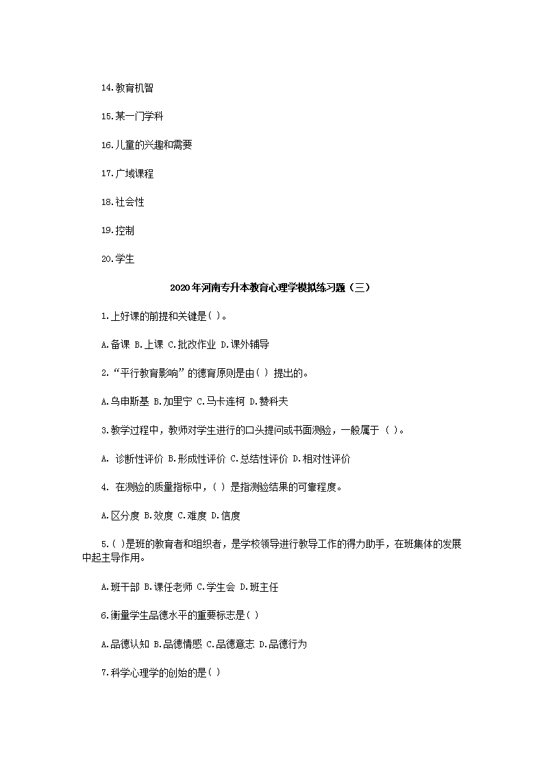 【文档预览】 无忧考网整理发布2020年河南专升本教育心理学模拟练习题三套(Word版),前五页预览如下: