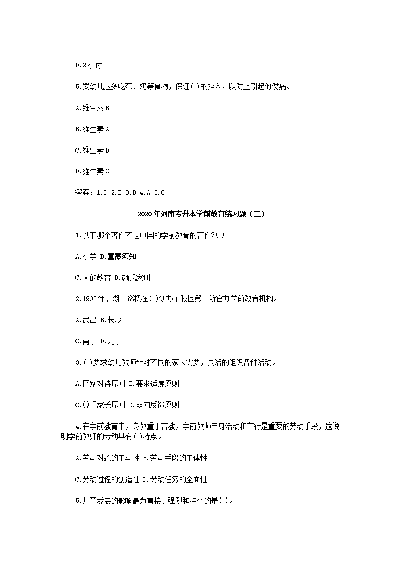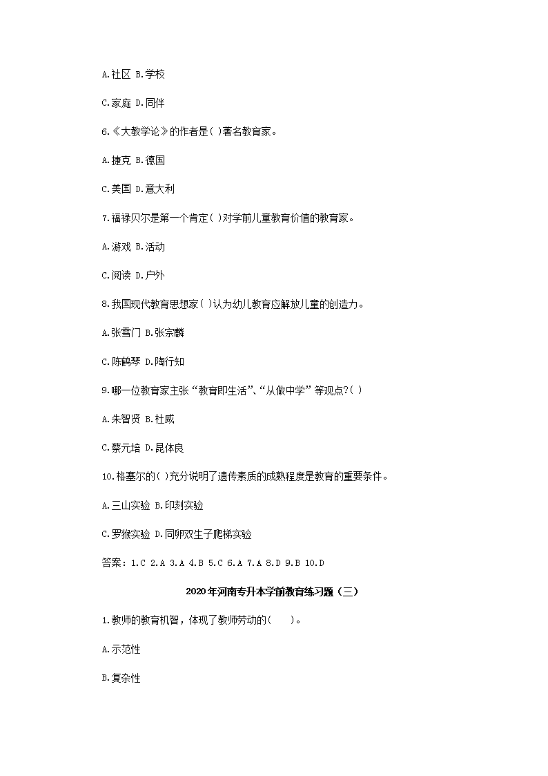【文档名称】 2020年河南专升本学前教育练习题三套(Word版).doc