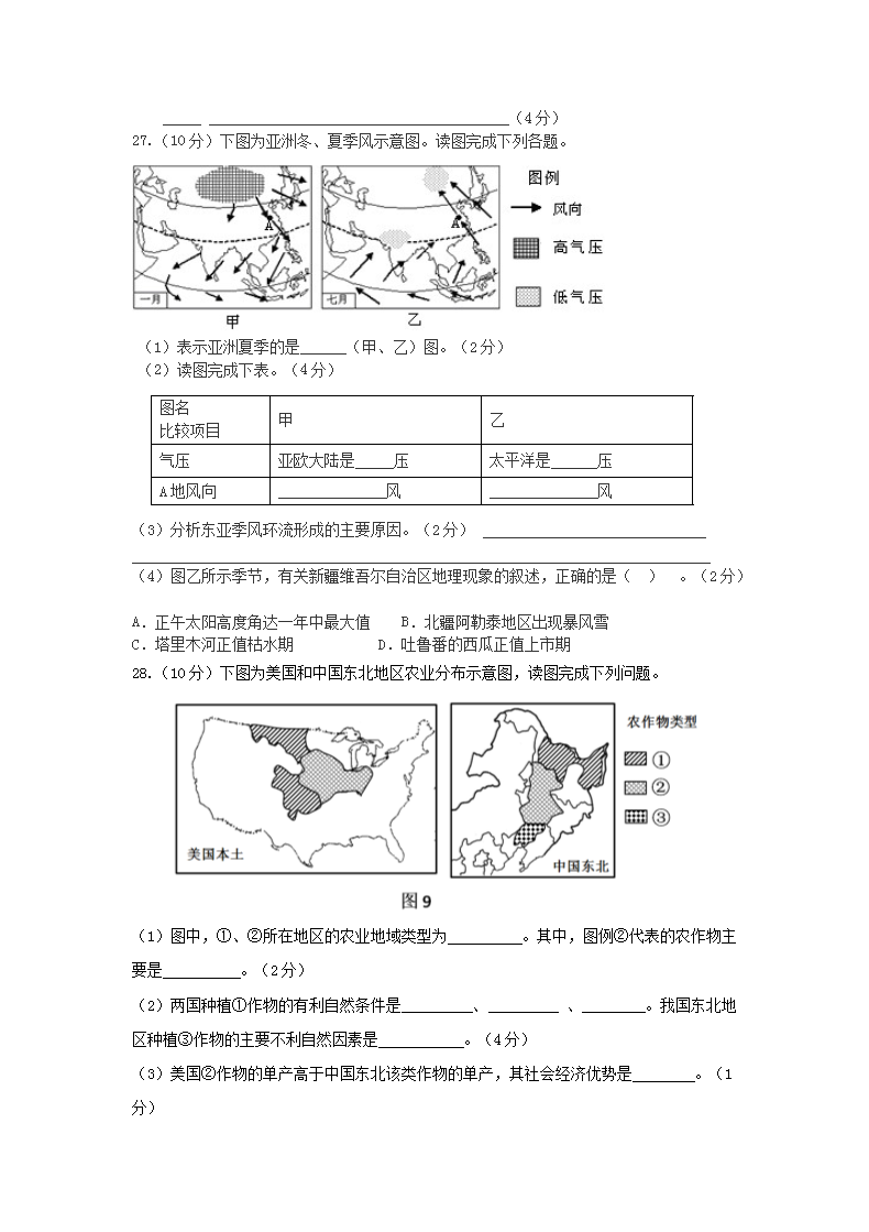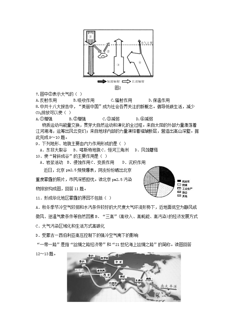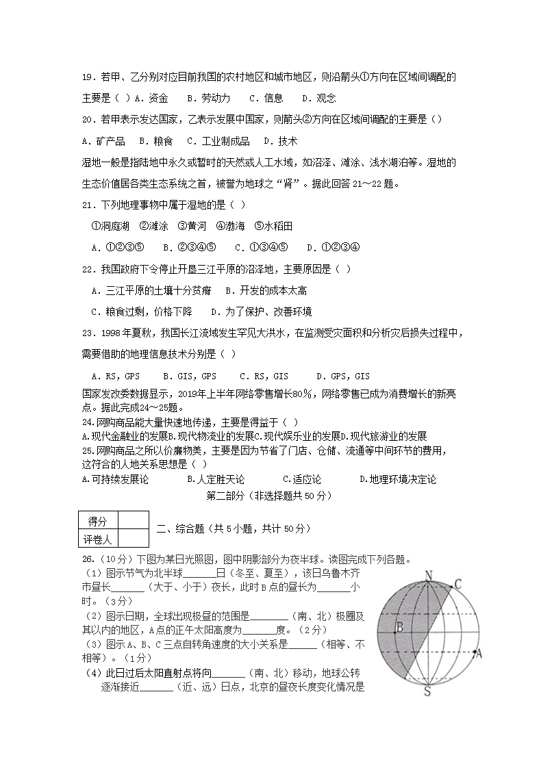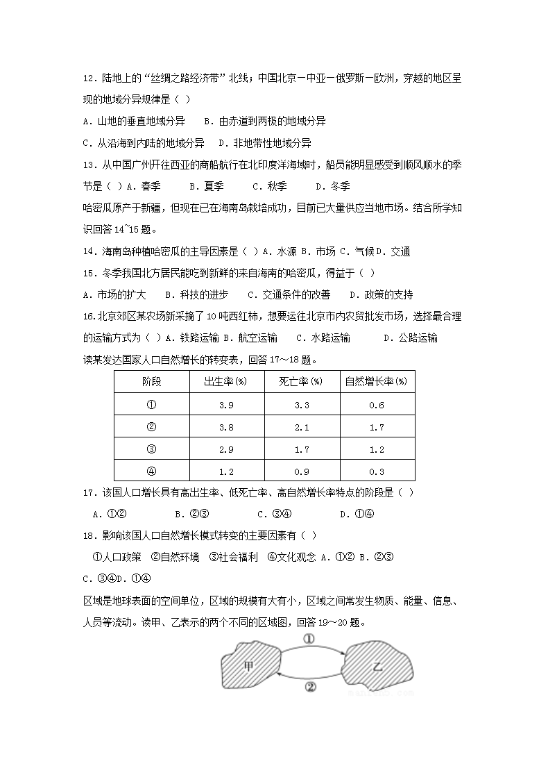 【文档名称】 2019年新疆普通高中会考地理考试真题(Word版).doc