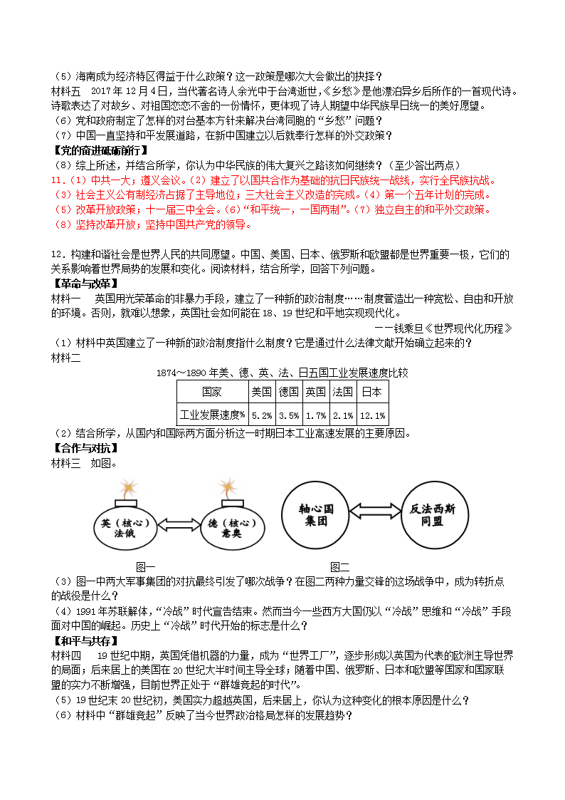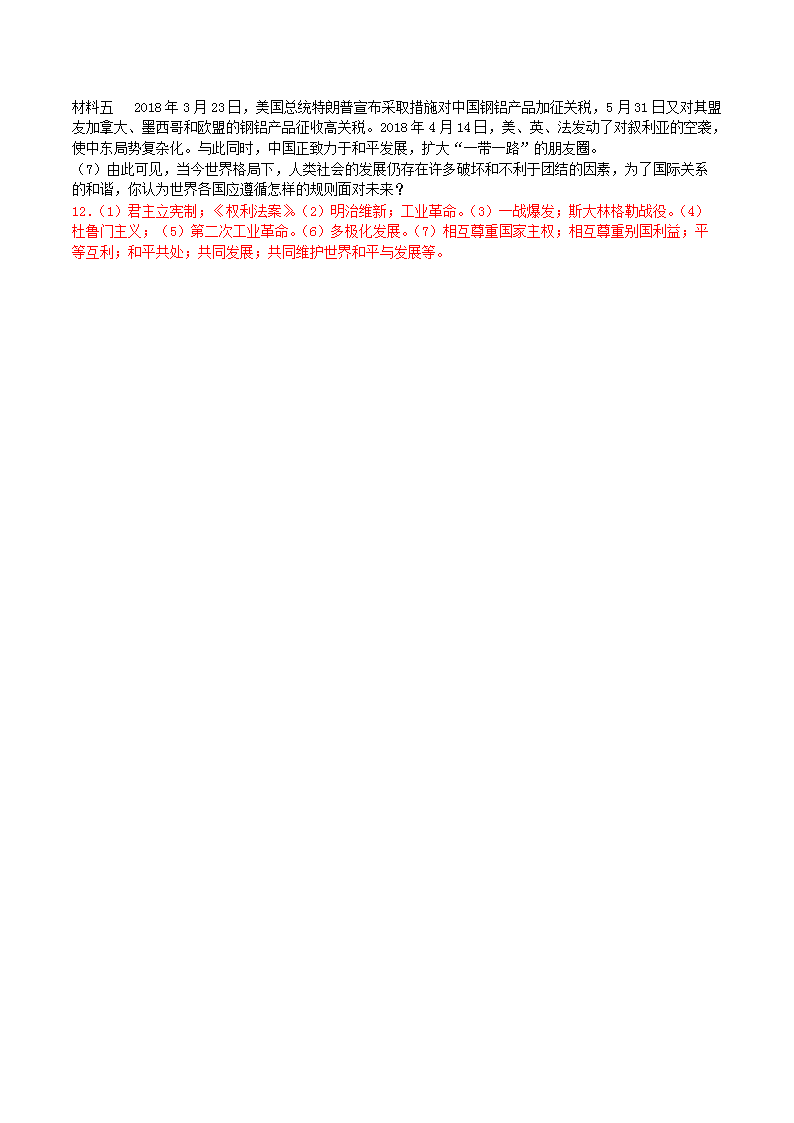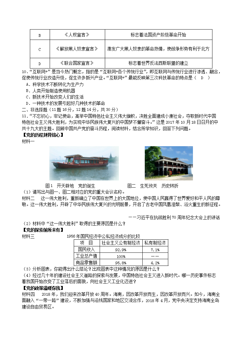 【文档名称】 2018年四川省遂宁市中考历史真题及答案(Word版).doc