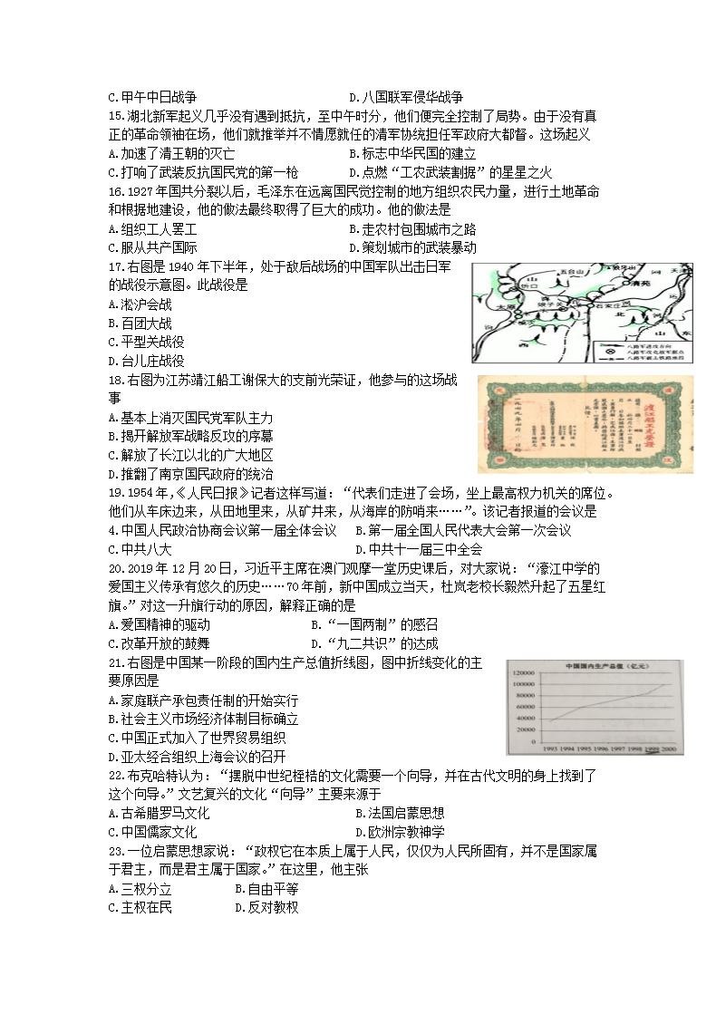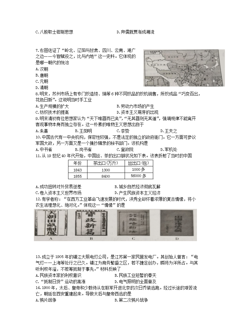 【文档名称】 2020年江苏普通高中会考历史真题及答案(Word版).doc
