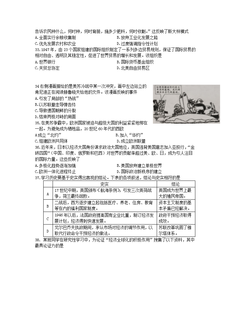 【文档预览】 无忧考网整理发布2020年江苏普通高中会考历史真题及答案(Word版),前五页预览如下: