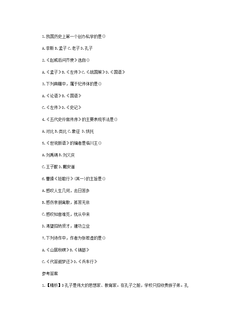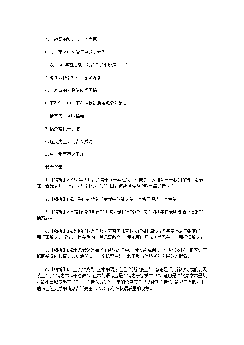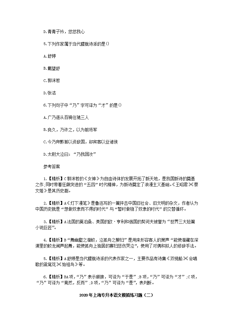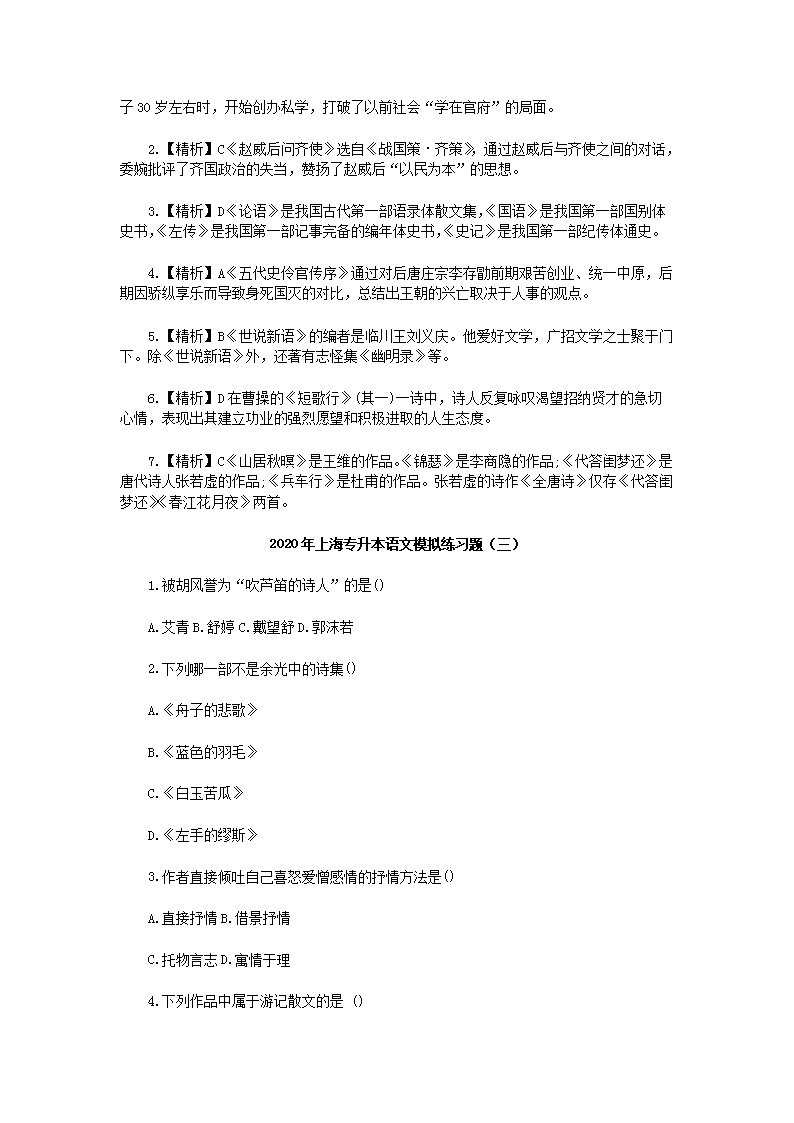 【文档名称】 2020年上海专升本语文模拟练习题三套(Word版).doc