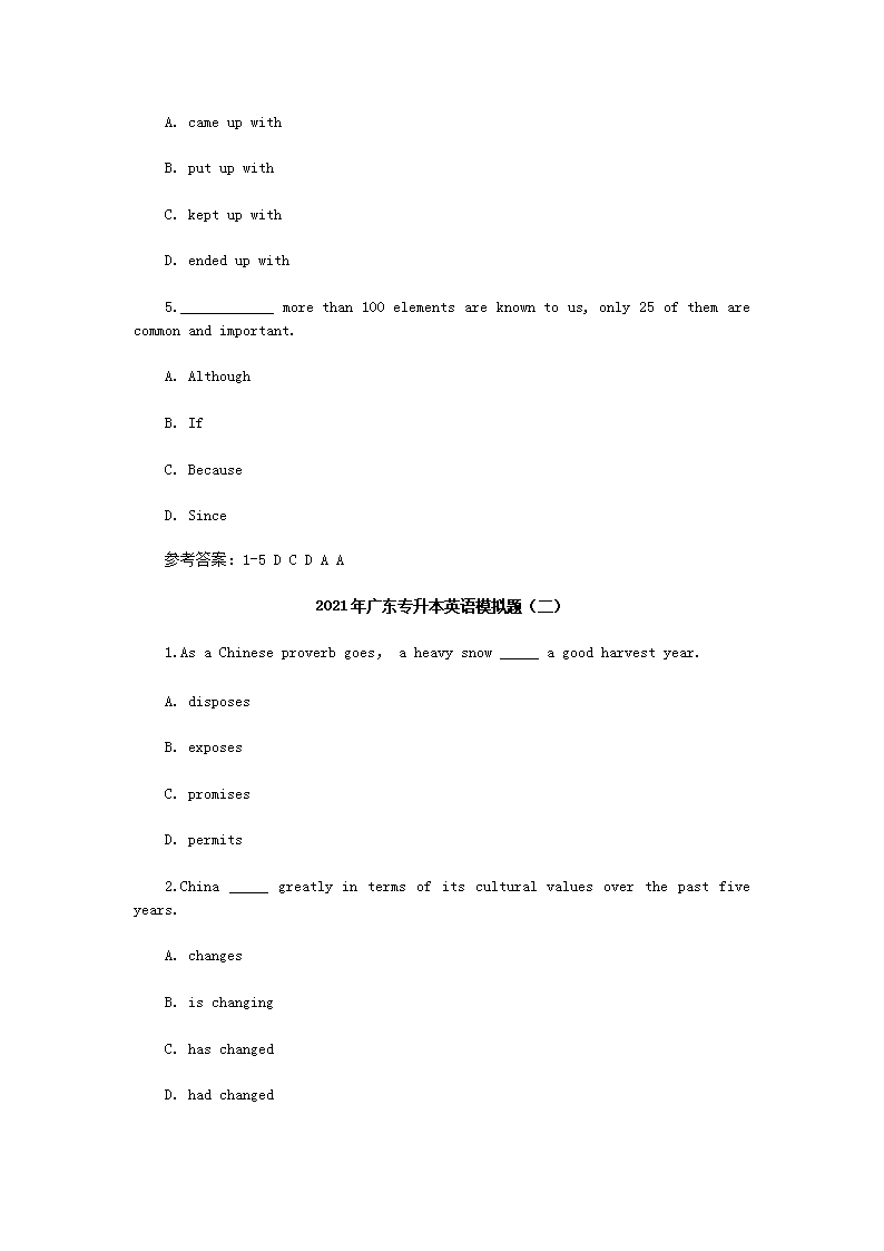 【文档预览】 无忧考网整理发布2021年广东专升本英语模拟题三套(Word版),前五页预览如下: