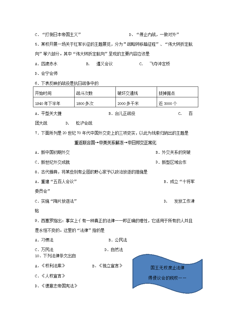 【文档名称】 2016年四川普通高中会考历史真题及答案(Word版).doc