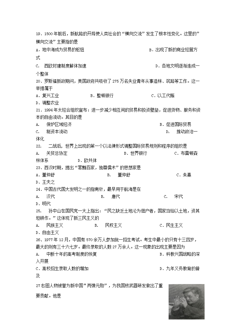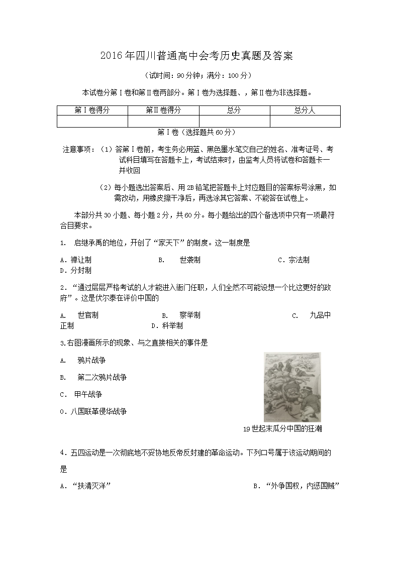 【文档预览】 无忧考网整理发布2016年四川普通高中会考历史真题及答案(Word版),前五页预览如下: