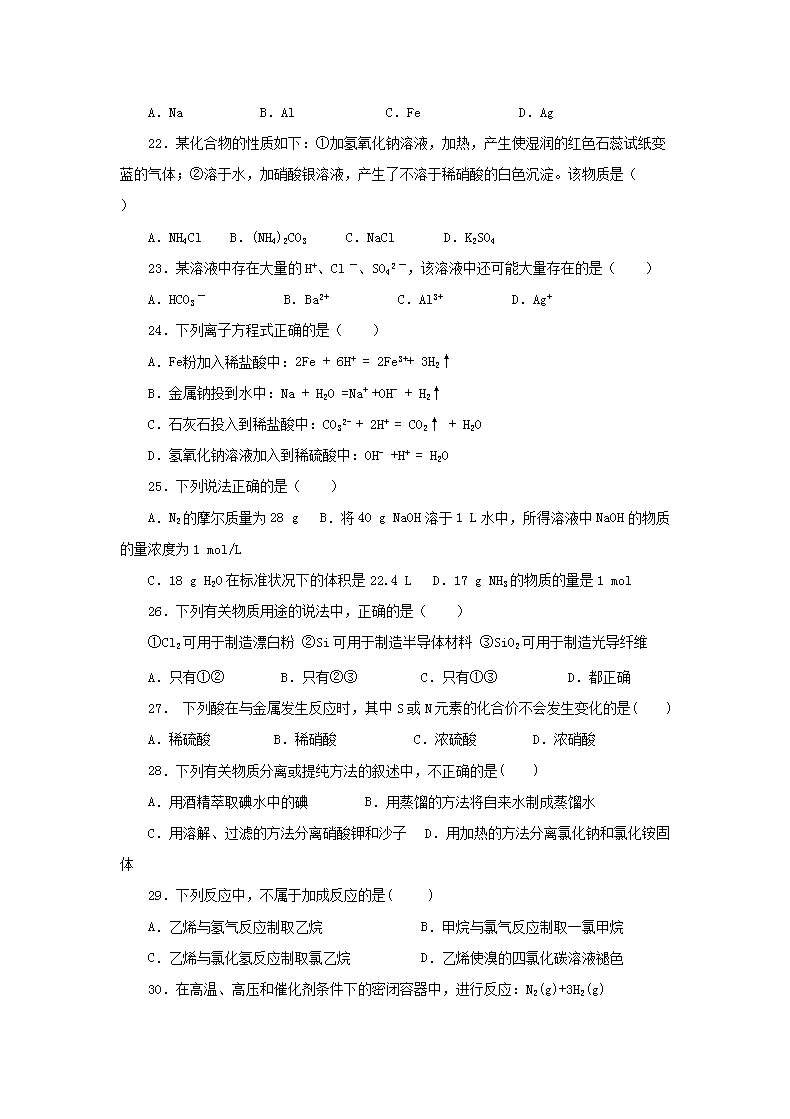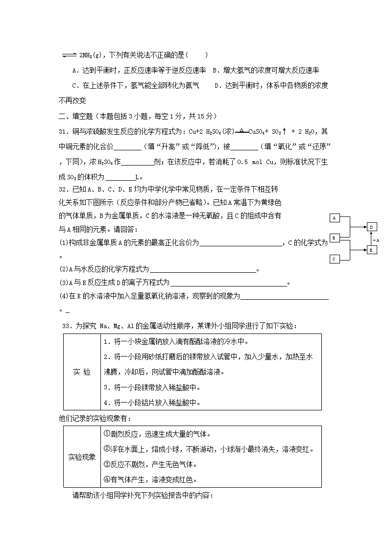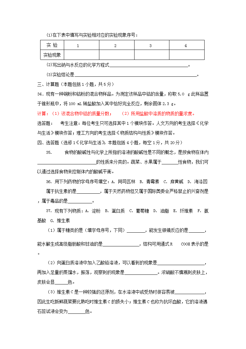 【文档名称】 2011年四川普通高中会考化学真题(Word版).doc