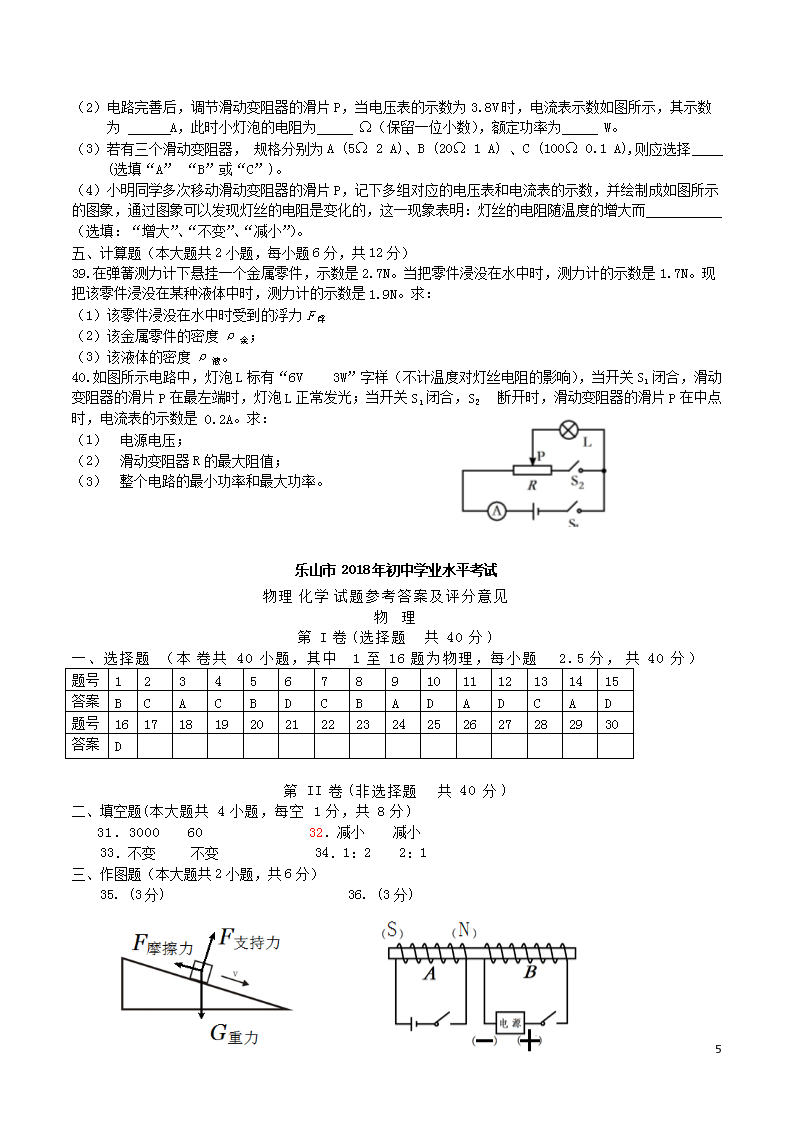 【文档名称】 2018年四川省乐山市中考物理真题及答案(Word版).doc