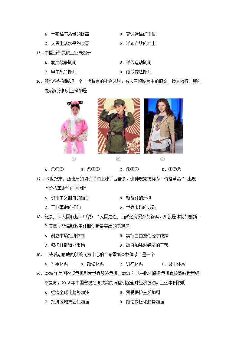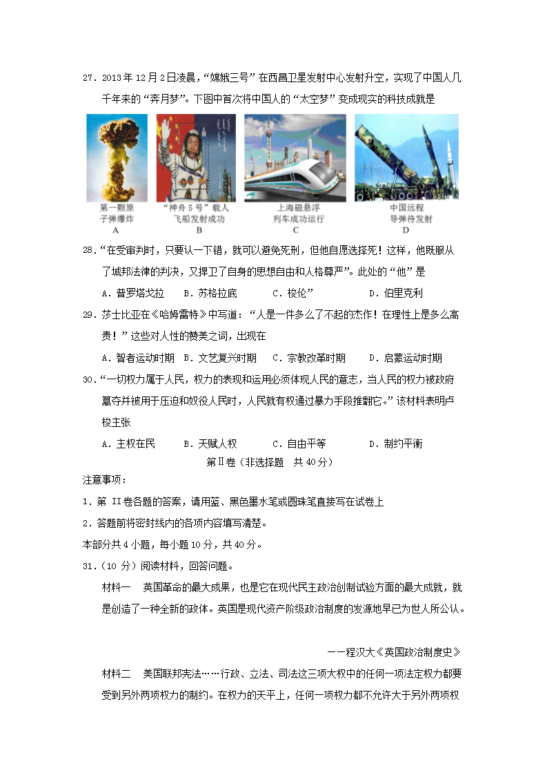 【文档名称】 2012年四川普通高中会考历史真题及答案(Word版).doc