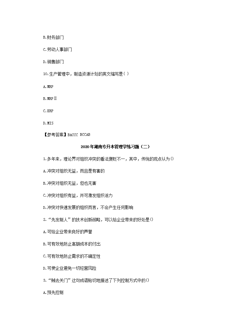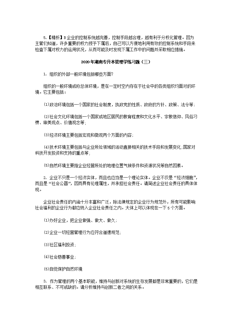 【文档名称】 2020年湖南专升本管理学练习题三套(Word版).doc