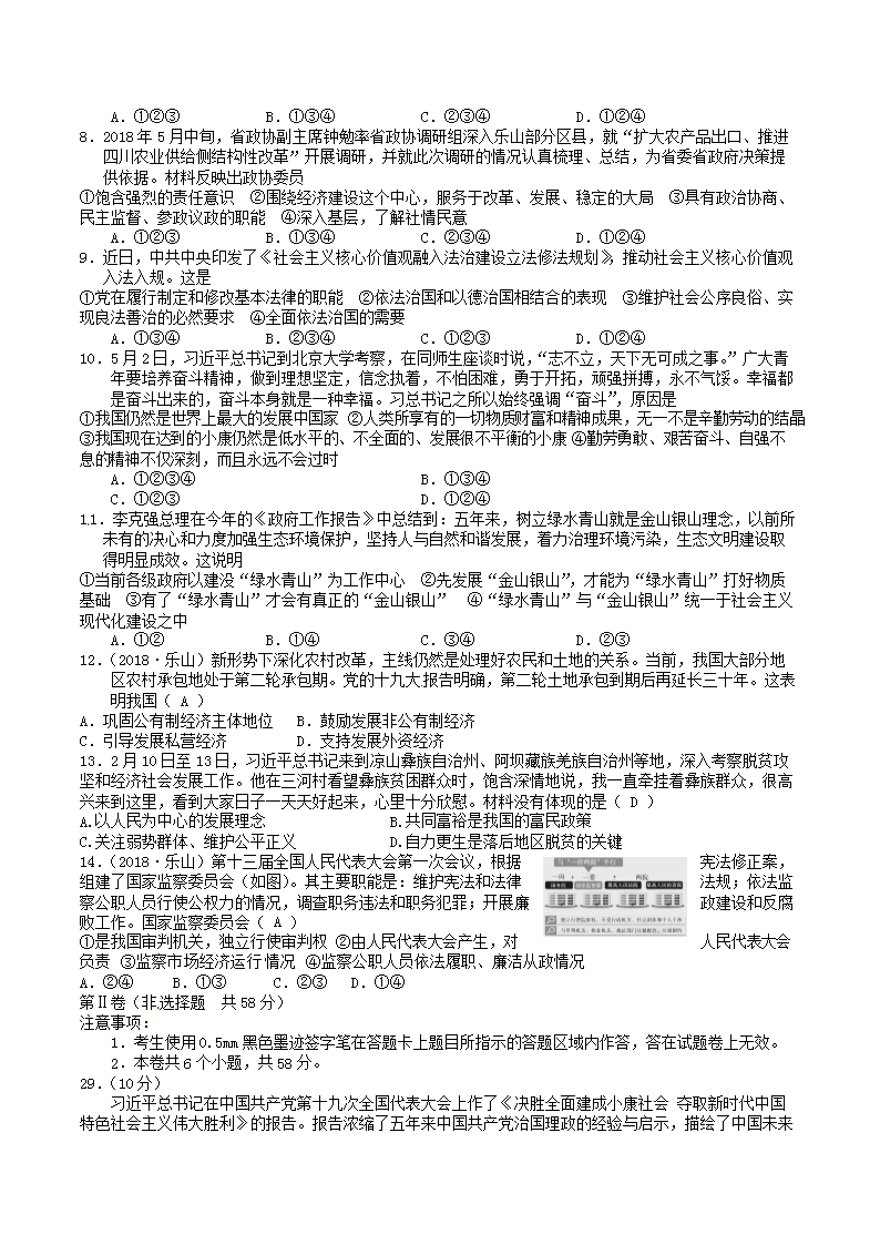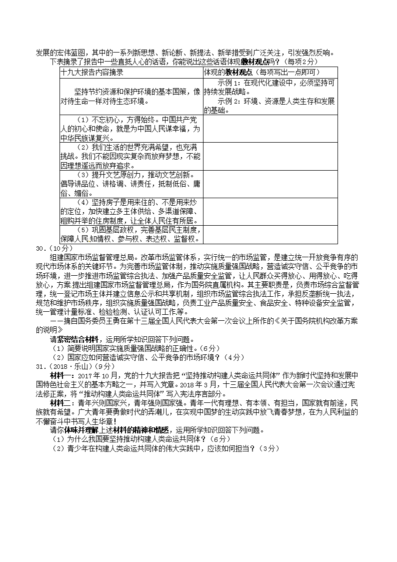 【文档名称】 2018年四川省乐山市中考思想品德真题及答案(Word版).doc