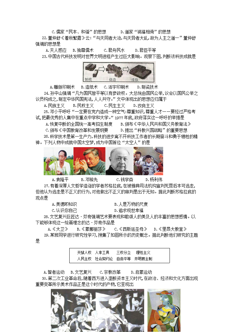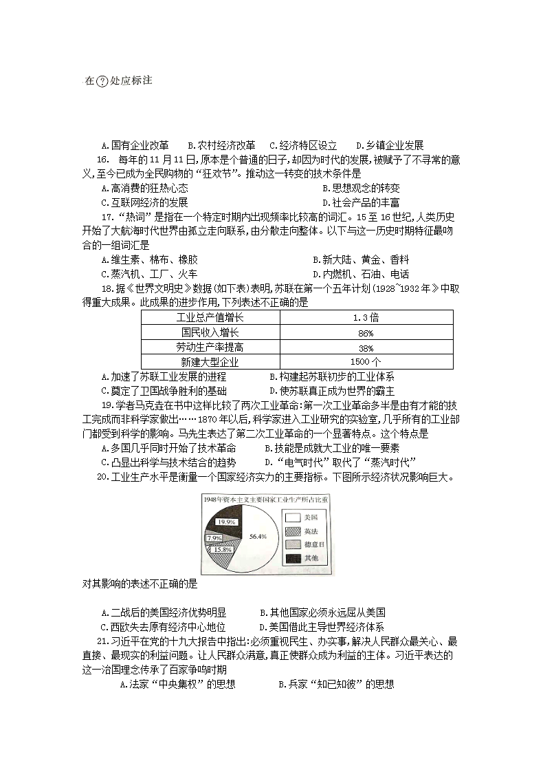 【文档名称】 2018年陕西普通高中会考历史真题及答案(Word版).doc