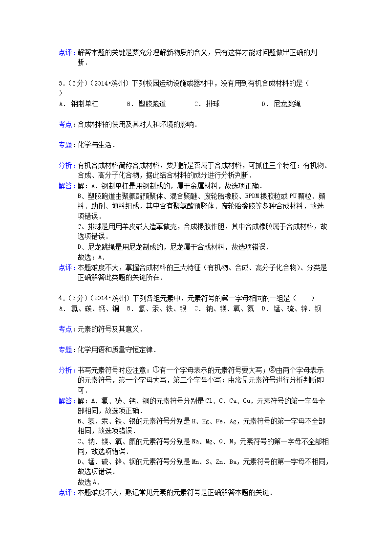 【文档名称】 2014山东省滨州市中考化学真题及答案(Word版).doc