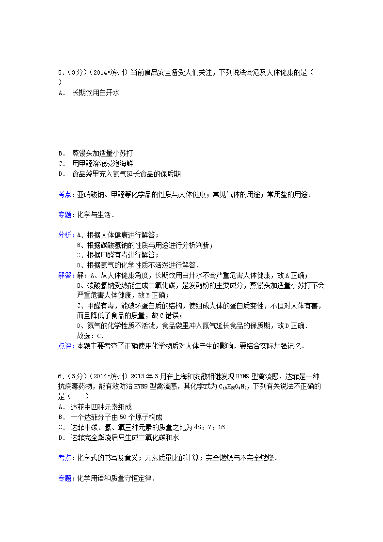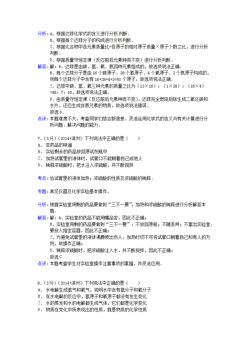 【文档预览】 无忧考网整理发布2014山东省滨州市中考化学真题及答案(Word版),前五页预览如下: