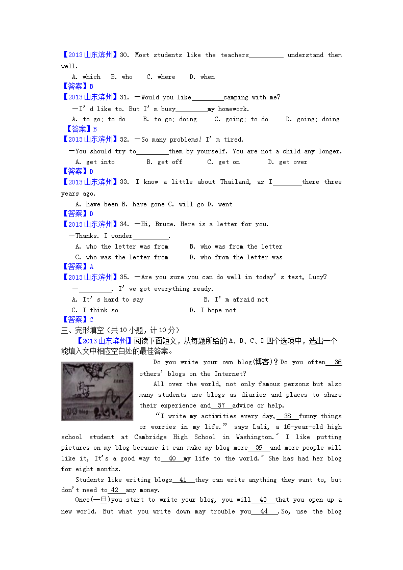 【文档名称】 2013山东省滨州市中考英语真题及答案(Word版).doc