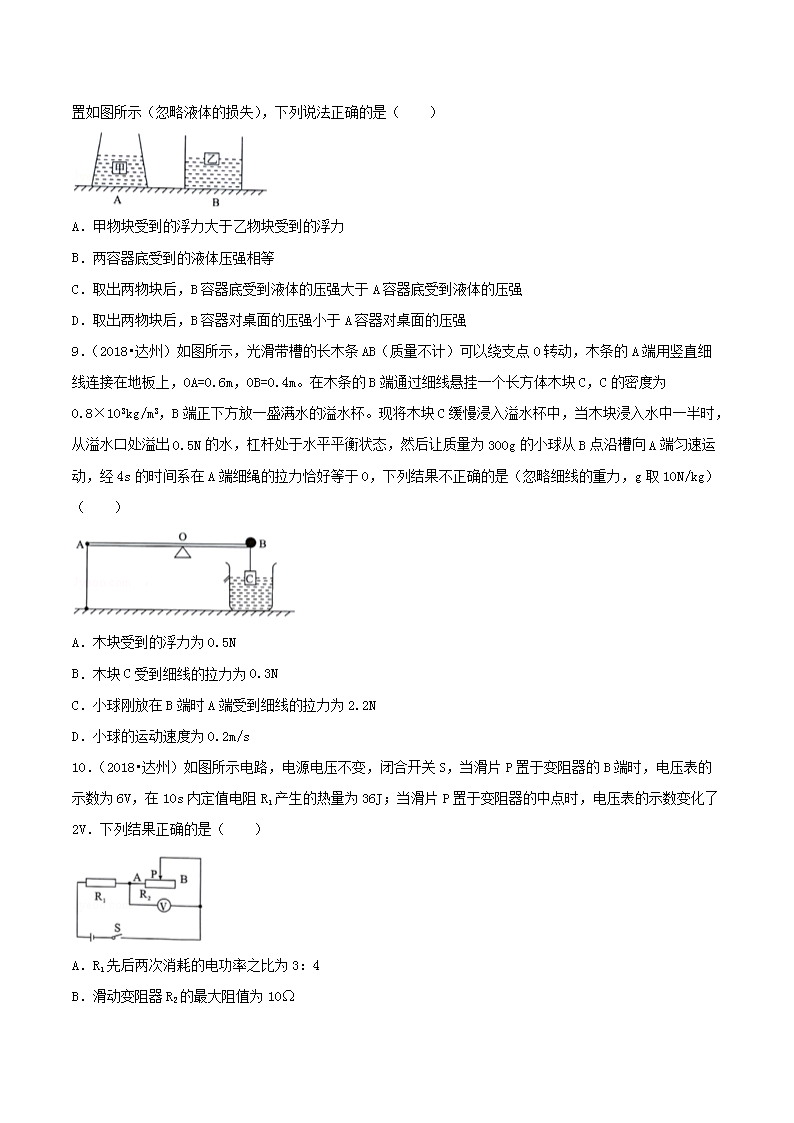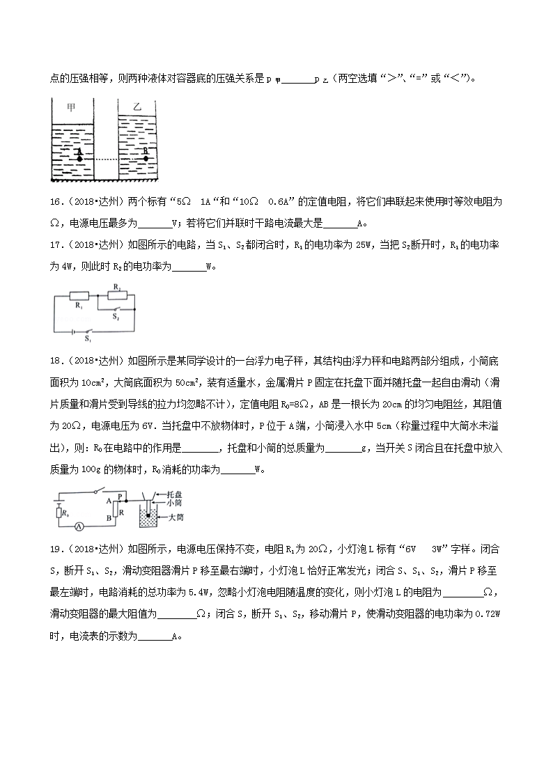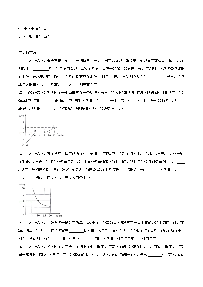 【文档名称】 2018年四川省达州市中考物理真题及答案(Word版).doc