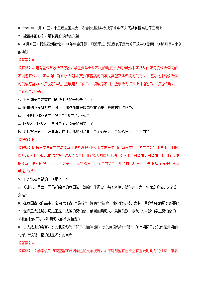 【文档名称】 2018年四川省凉山州中考语文真题及答案(Word版).doc