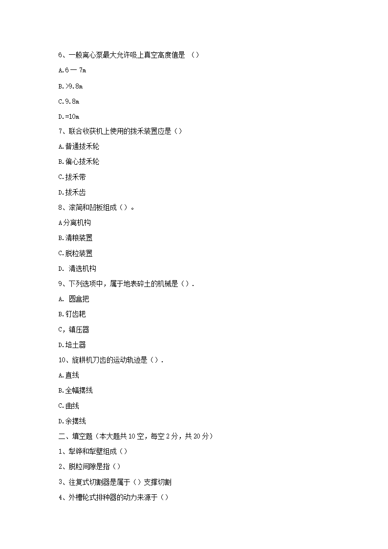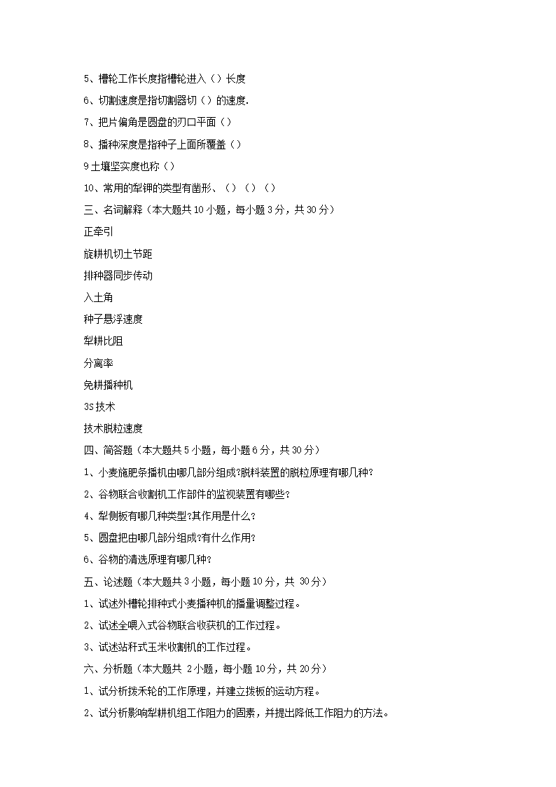 【文档名称】 2012年甘肃农业大学农业机械学考研真题(Word版).doc