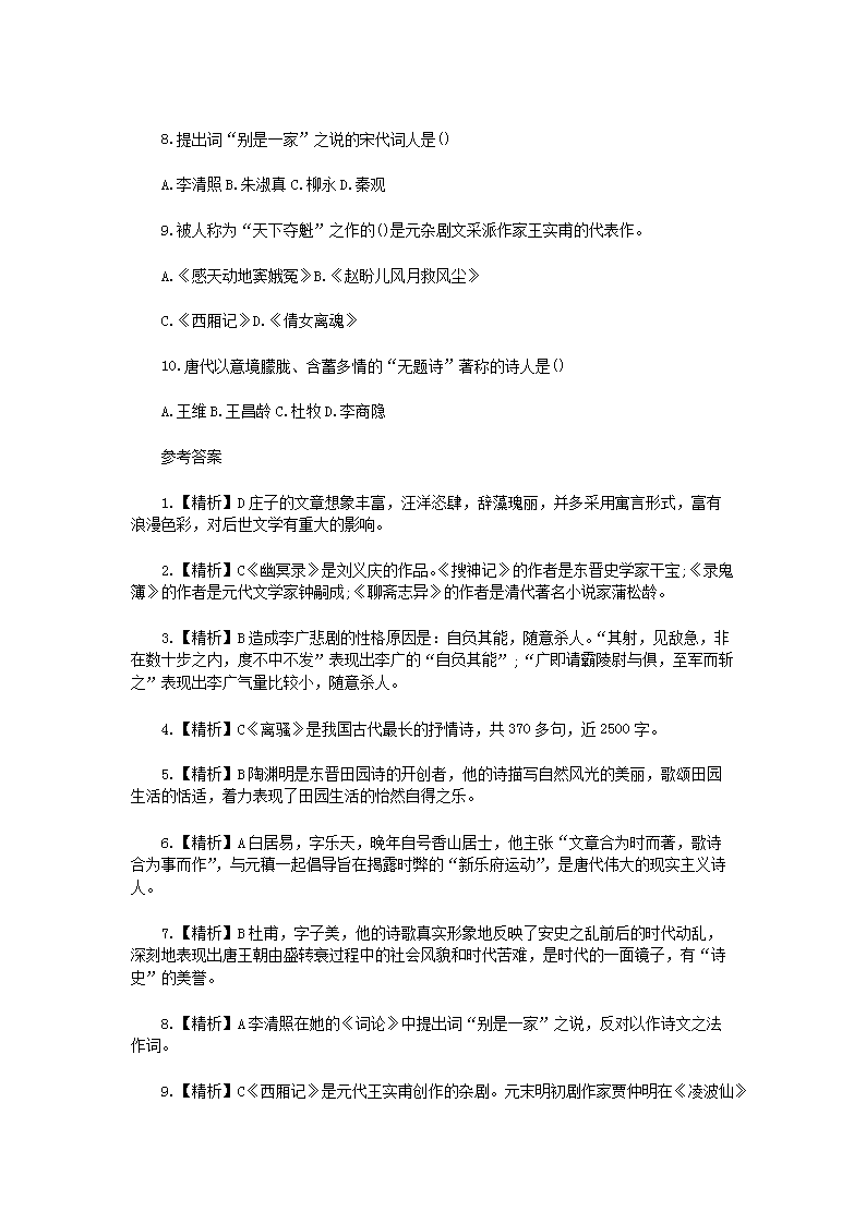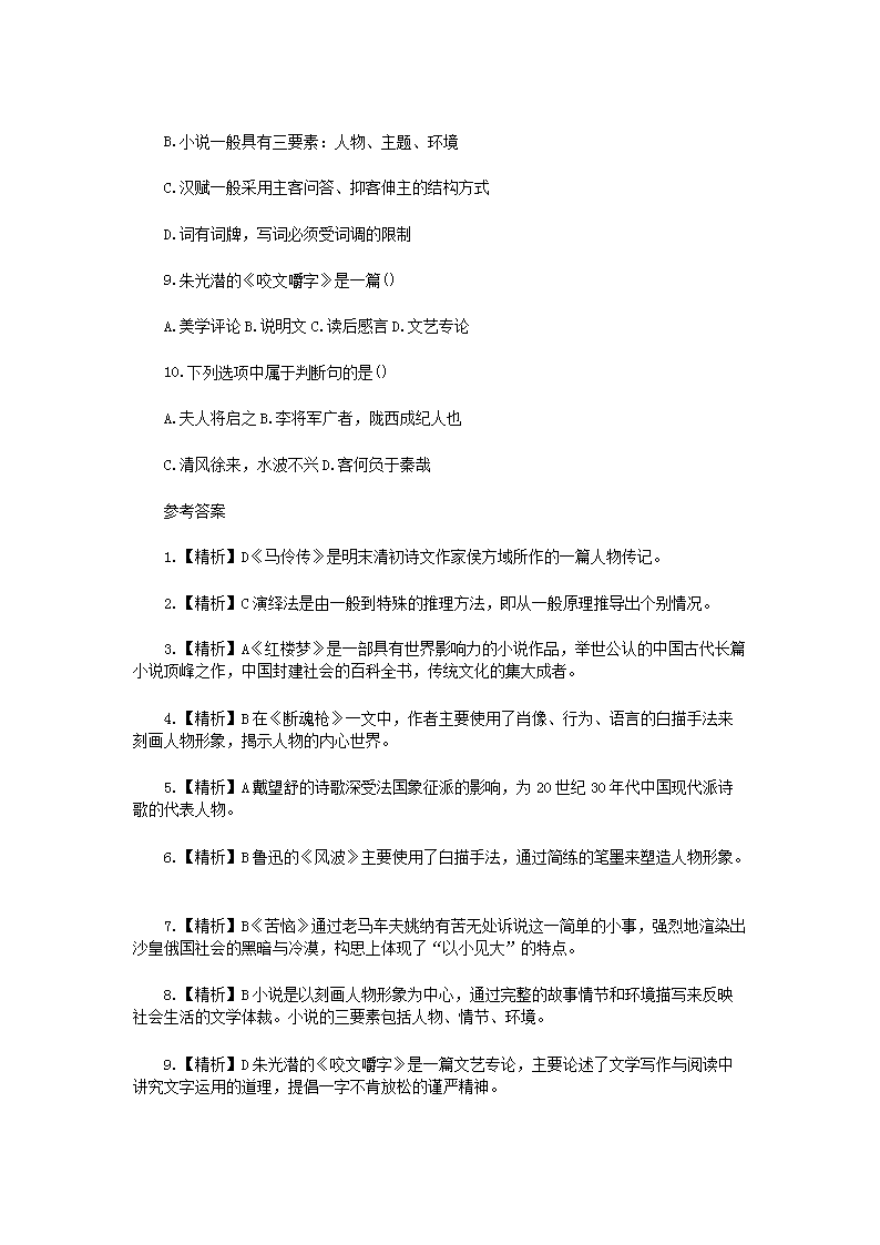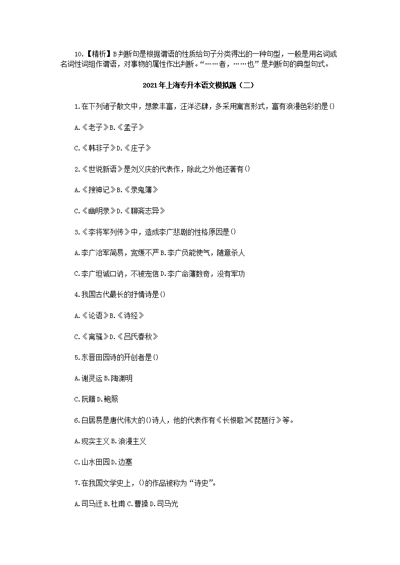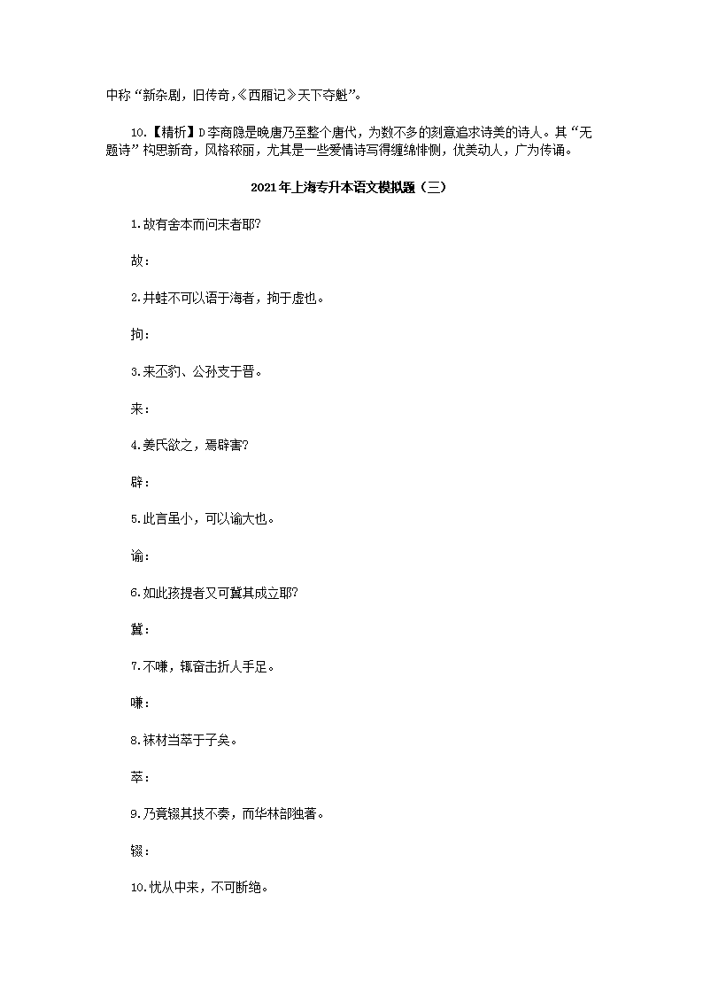 【文档名称】 2021年上海专升本语文模拟题三套(Word版).doc