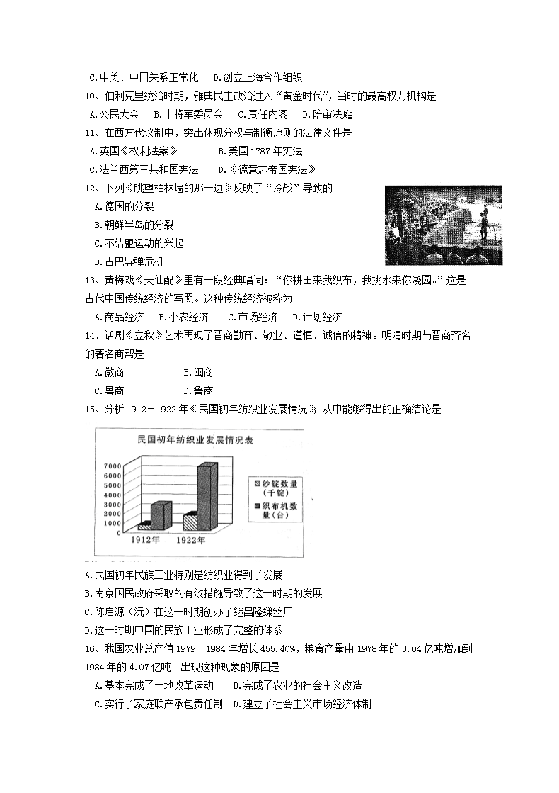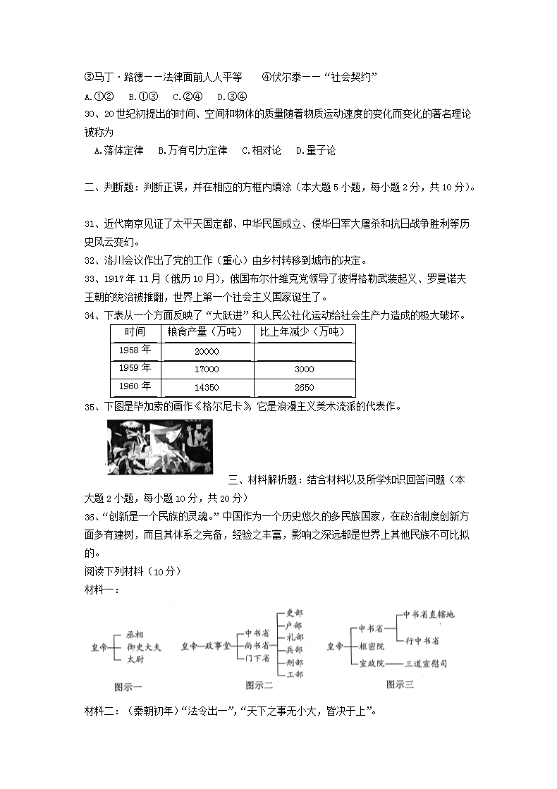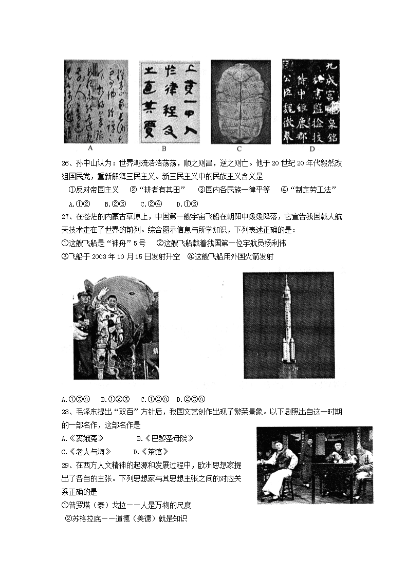 【文档名称】 2007年江苏普通高中会考历史真题及答案(Word版).doc