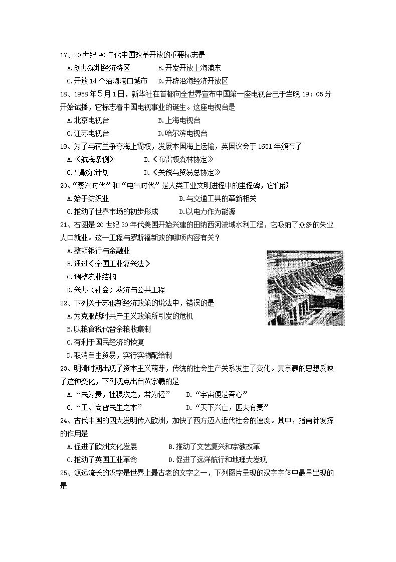 【文档预览】 无忧考网整理发布2007年江苏普通高中会考历史真题及答案(Word版),前五页预览如下:
